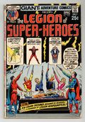 Tags: Giant-Sized Issue$25.0068-page Giant G-81; Legion of Super-Heroes reprints. Cover pencils by Curt Swan, inks by Murphy Anderson. The Stolen Super-Powers! (from Adventure 304), script by Jerry Siegel, art by John Forte; Saturn Girl tries to sacrifice herself as the Legionnaire predicted to die fighting Zaryan, but Lightning Lad dies instead. The Secret of the Mystery Legionnaire (from issue 305), script by Jerry Siegel, art by John Forte; Mon-El finally leaves the Phantom Zone and joins the Legion full-time. The Return of Lightning Lad! (from issue 308), script by Edmond Hamilton, art by John Forte. Part I: The Super Sacrifice of the Legionnaires! (from issue 312), script by Edmond Hamilton, art by John Forte. Part II: The Bravest Legionnaire! Special new features: Fashions from Fans presents alternate costumes suggested by fans (pencils by Ross Andru, inks by Mike Esposito) and a two-page Diagram of Legion Headquarters Complex. 68 Pages, Full Color. Cover price $0.25.