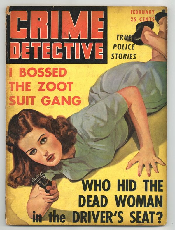 Published Feb 1943 by Crime Detective, Inc..$27.00- Front cover detached 15%. Water damage: Moderate. Staple rust: Slight.