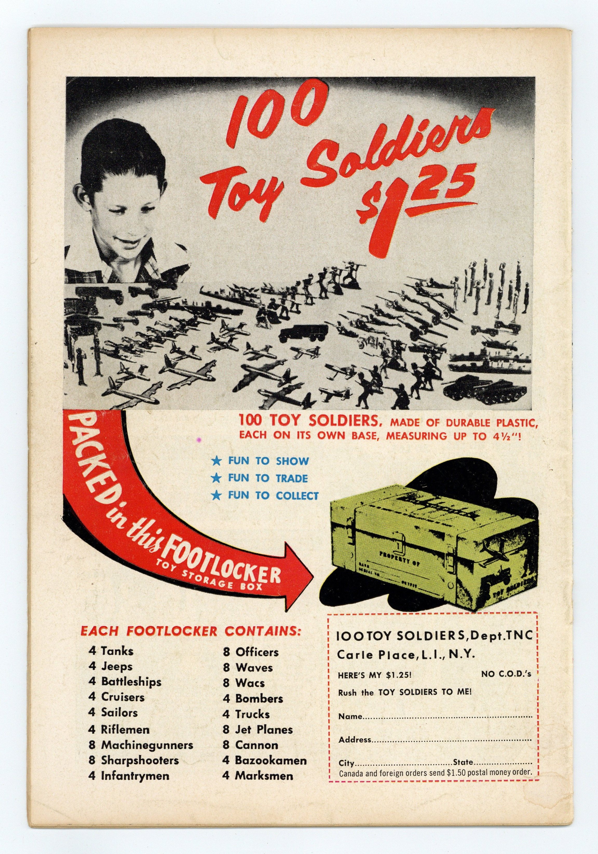 Last 10-cent cover price. Cover pencils by Carmine Infantino, inks by Joe Giella. Space-Boomerang Trap!, script by John Broome, pencils by Carmine Infantino, inks by Joe Giella; Captain Boomerang is paroled from prison and invents a time-traveling boomerang; Flash and Elongated Man stop Boomerang; all three join together to battle aliens. Vengeance Via Television!, script by John Broome, pencils by Carmine Infantino, inks by Joe Giella; When James Lawton is released from jail he takes revenge on those who put him in jail by using his new psi-helmet. Sea Devils #1 ad. Letter from fanzine writers Bernie Bubnis and Robert Jennings. Letter from Infantino. Amazing Speeds fact page. 36 Pages, Full Color. Cover price $0.10.