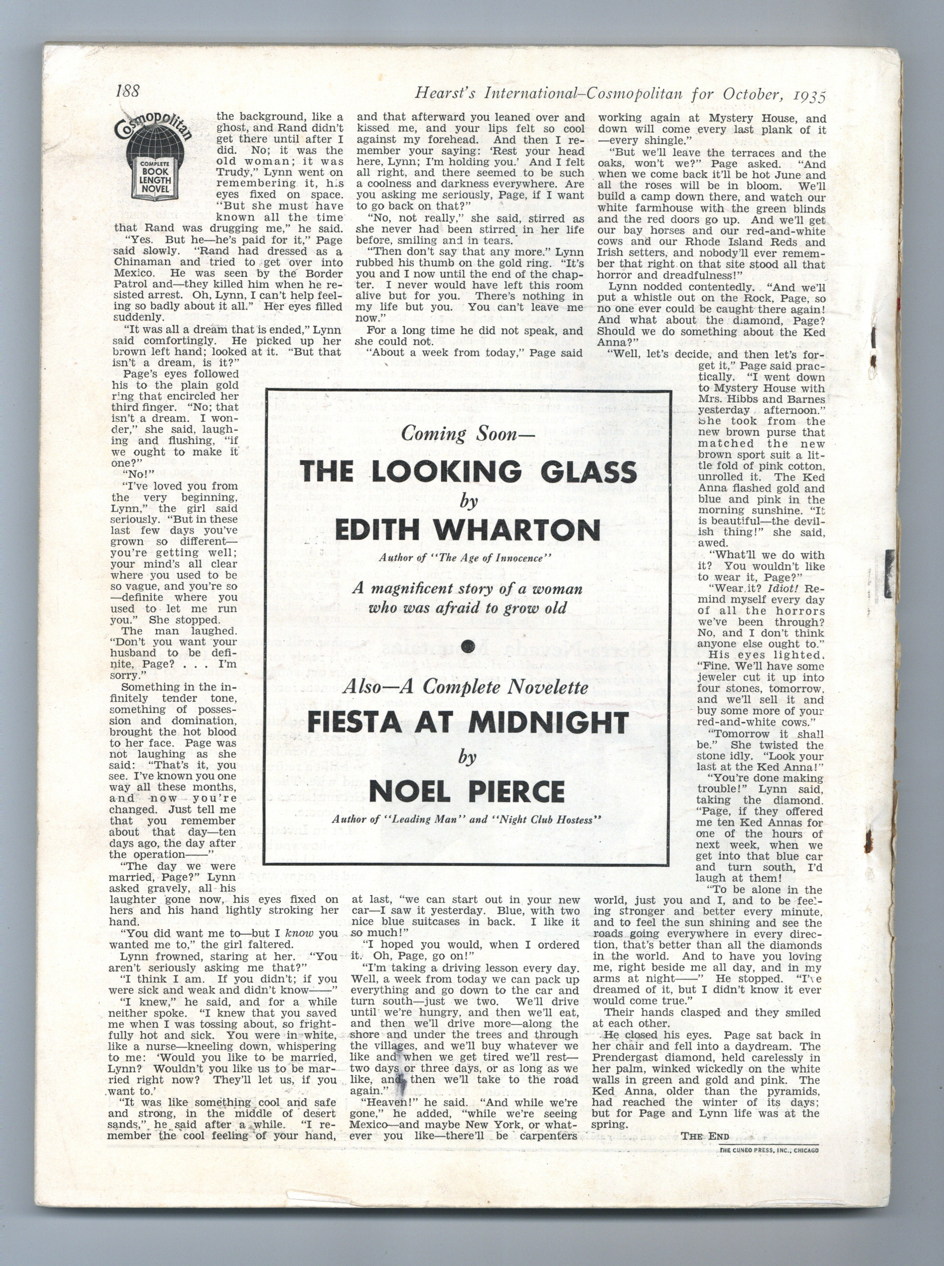 Vol. 99, No. 4. October 1935. Cover by Bradshaw Crandell. Fiction by Kathleen Norris, Damon Runyon, Pearl Buck, James Hilton, Mildred Cram, Valma Clark, Doris Rend, Richard Sherman, Albert Richard Wetjen, Olga Moore, Faith Baldwin, A. J. Cronin, and S. S. Van Dine. Interior art by E. M. Jackson, Harry Beckhoff, Benton Clark, Elmor Brown, Everett Shinn, Jay Hyde Barnum, Harold Von Schmidt, McClelland Barclay, James Schucker, W. Smithson Broadhead, Courtney Allen, and more. 8.5" x 11.5". 188 pages. B&W with spot color and full color ads. Cover price $0.25.