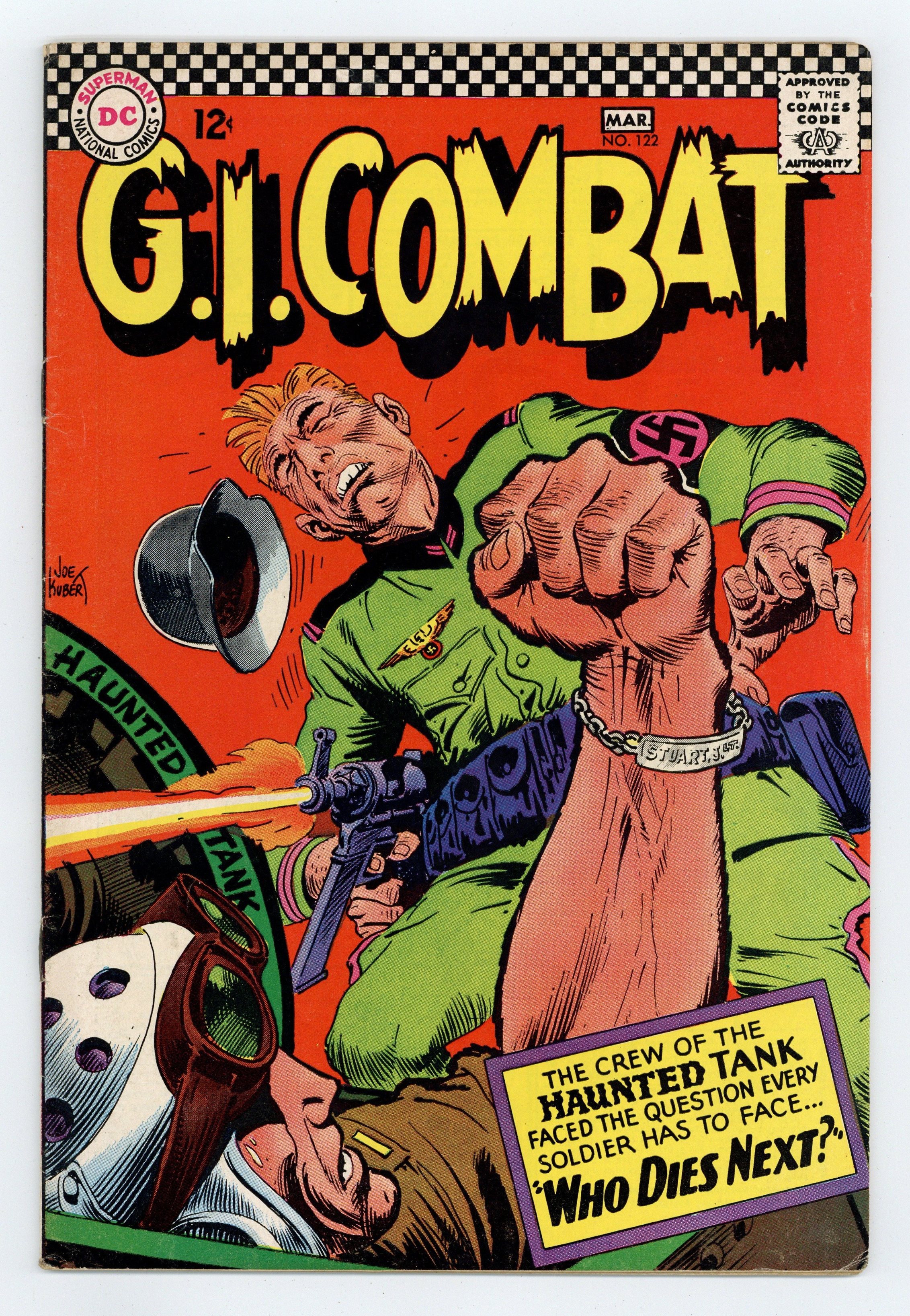 Cover by Joe Kubert. Written by Robert Kanigher and Howard Liss. Art by Irv Novick and Jack Abel. The crew of the Haunted Tank faced the question every soldier has to face! Don't miss..."Who Dies Next?" by Robert Kanigher and Irv Novick. Plus: "Finish It Upstairs!" by Howard Liss and Jack Abel. 36 Pages, Full Color. Cover price $0.12.