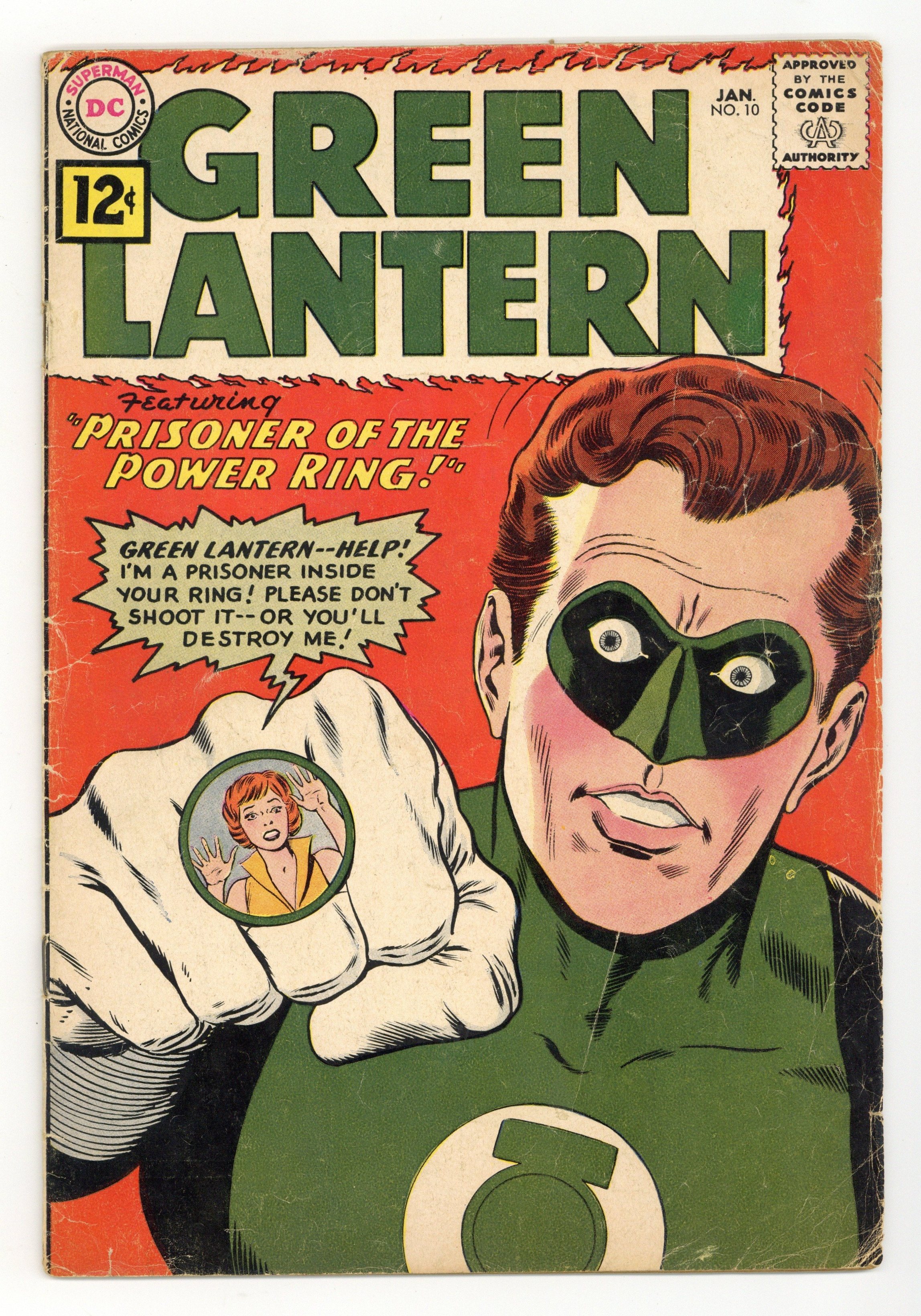 Cover pencils by Gil Kane, inks by Murphy Anderson. Prisoner of the Power Ring!, script by John Broome, pencils by Gil Kane, inks by Joe Giella; Dr. Jason Blanding shrinks his entire family to a sub-atomic level. Once there Green Lantern's ring energy begins to affect the sub-atomic world and Green Lantern has to travel there to rescue the Blanding family. The Origin of Green Lantern's Oath!, script by John Broome, pencils by Gil Kane, inks by Murphy Anderson; Green Lantern tells Pieface the story of his first three cases, on which his oath is based. Letter to the editor from editor E. Nelson Bridwell. 36 pgs. $0.12. Cover price $0.12.