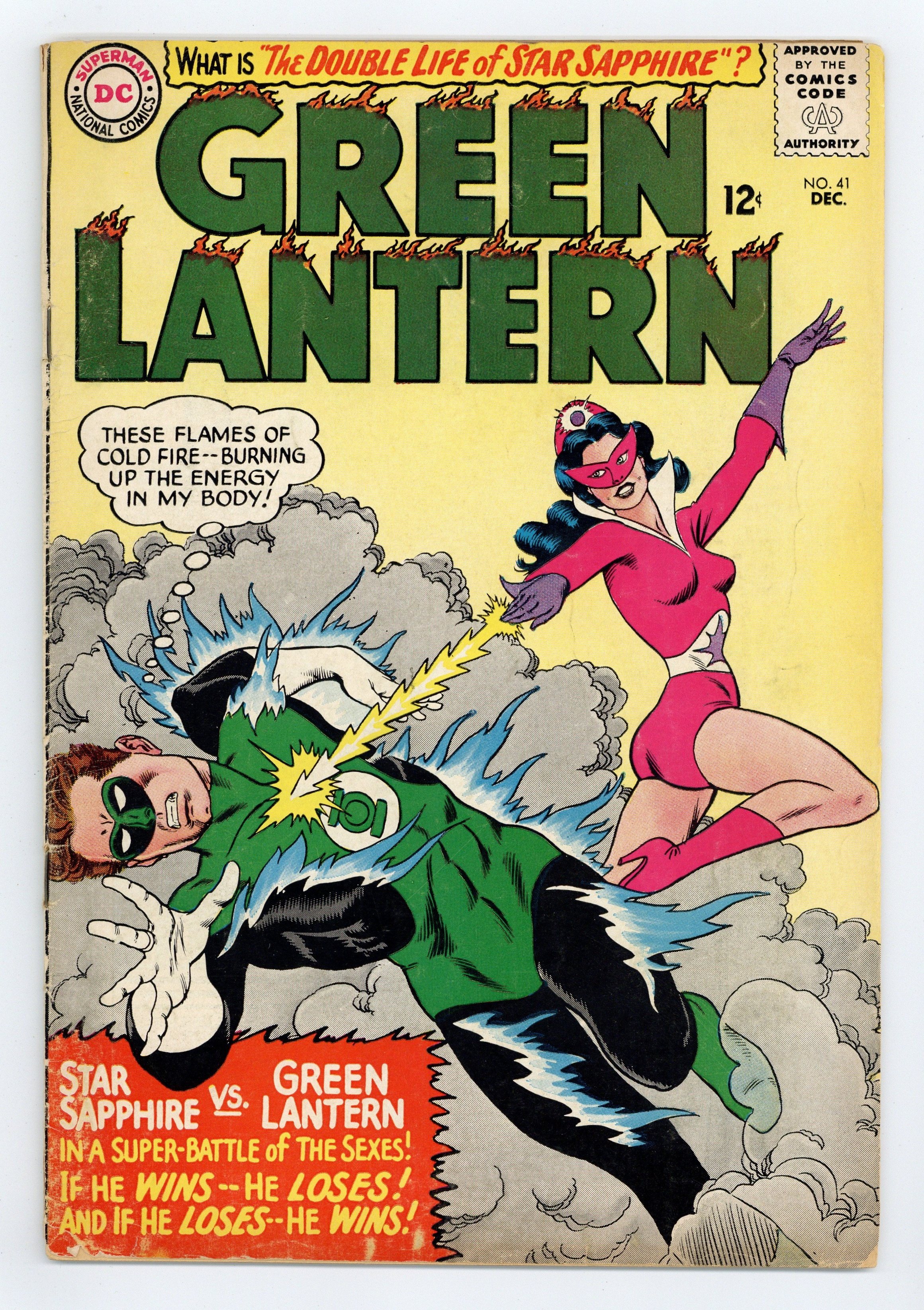 Cover pencils by Gil Kane, inks by Murphy Anderson. The Double Life of Star Sapphire, script by Gardner Fox, pencils by Gil Kane, inks by Sid Greene; The Queen of the Zamarons impersonates Carol Ferris so she can trick Green Lantern into marrying her. Challenge of the Coin Creatures, script by Gardner Fox, pencils by Gil Kane, inks by Sid Greene; Myrwhydden uses an ordinary criminal to capture Green Lantern. 36 pgs. $0.12. Cover price $0.12.