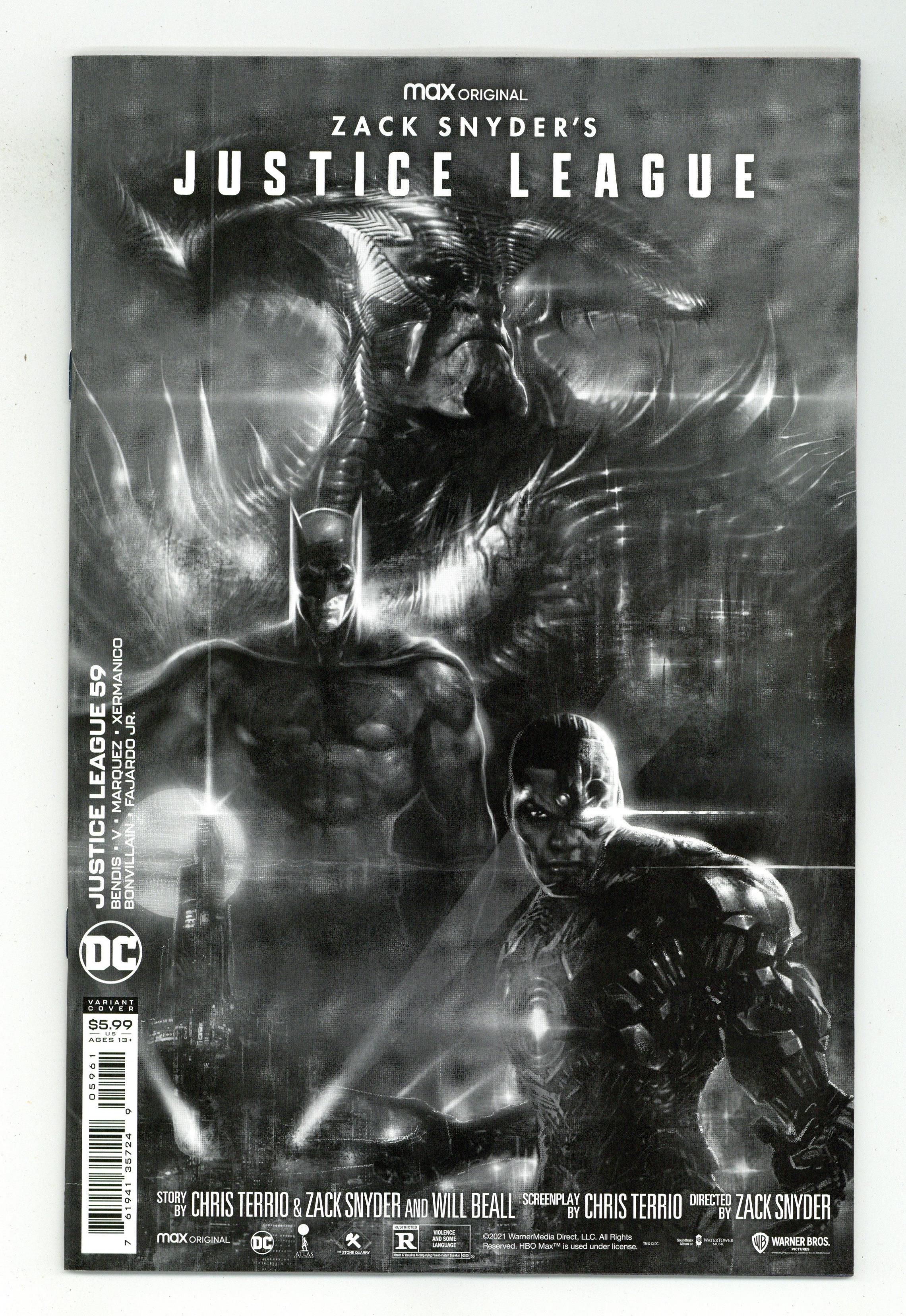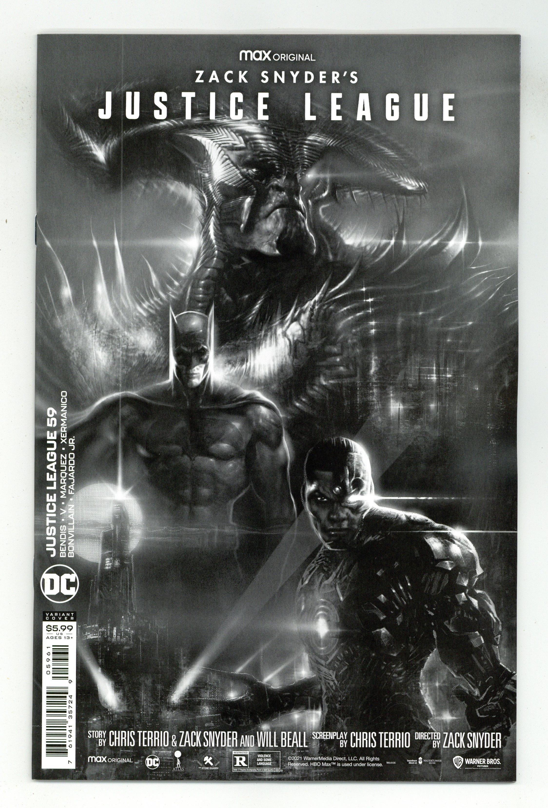 Tags: Justice League/Society$2.50Limited 1 for 25 Retailer Incentive Variant Cover. Written by Brian Michael Bendis and Ram V. Art by David Marquez and Xermanico. Cover by Liam Sharp. Writer Brian Michael Bendis reunites with artist David Marquez (Miles Morales, Iron Man, Batman/Superman) for a new, star-studded Justice League featuring Superman, Batman, the Flash, Hawkgirl, Aquaman, Hippolyta, new DC powerhouse Naomi, and...is that Black Adam?! Superman is leading the charge to reinvent the Justice League—and at the same time, a new, cosmic-powered threat arrives from Naomis homeworld to rule the Earth! And in the backup story, dark days lie ahead for the new Justice League Dark. Zatanna and John Constantine take a road trip, only to discover horror around the bend as a friend—and sometime foe—is reborn in fire! A legend is destroyed, and another takes a terrible turn, as Merlin reveals the beginning of a new, blood-drenched plot for all humankind. So begins writer Ram Vs new journey into the abyss with the Justice League Dark and artist Xermanico! 40 pages, full color. Rated T+ Cover price $4.99.