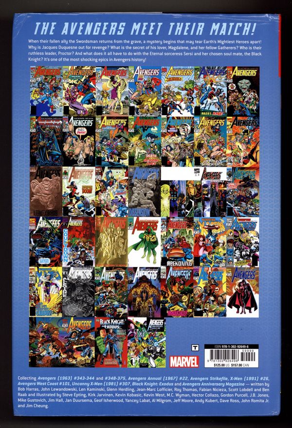 1st printing. Collects Avengers (1963-1996 1st Series) #343-344 and 348-375, Avengers (1963-1996 1st Series) Annual #22, Avengers Strikefile (1994), X-Men (1991-2008 1st Series) #26, Avengers West Coast (1985-1994) #101, The Uncanny X-Men (1963-2011 1st Series) #307, Black Knight: Exodus (1996), and Avengers Anniversary Magazine (1993).