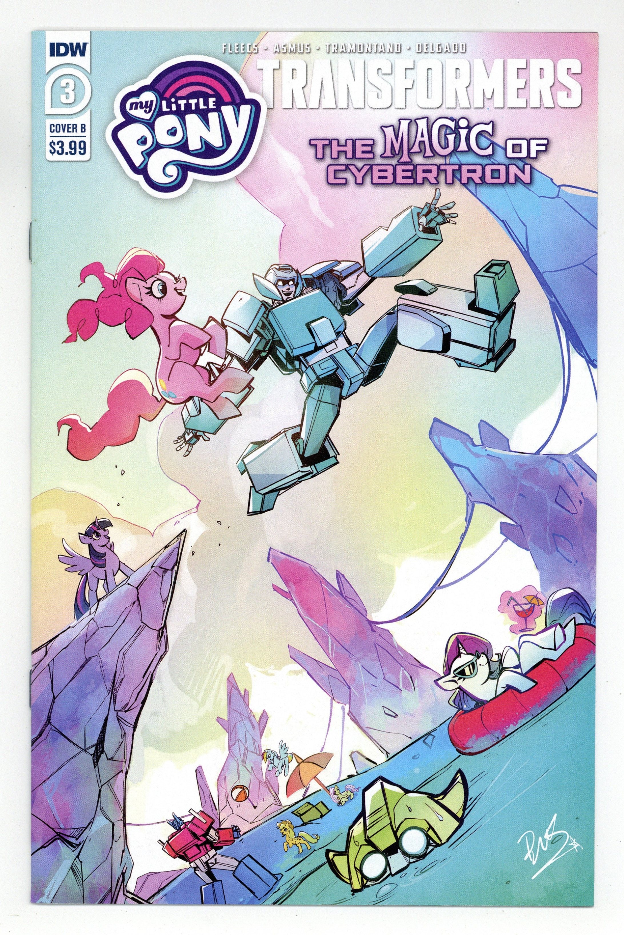 Tags: TransformersPublished Jun 2021 by IDW Publishing.$24.00Written by James Asmus & Tony Fleecs. Art by Priscilla Tramontano & Tony Fleecs. Cover by Bethany McGuire-Smith. Sombra's evil plans continue to spell trouble for our unlikely heroes! Meanwhile, Vinyl Scratch, Octavia, and Soundwave have to figure out how to work together-what could possibly go wrong?! 28 pages, full color. Cover price $3.99.