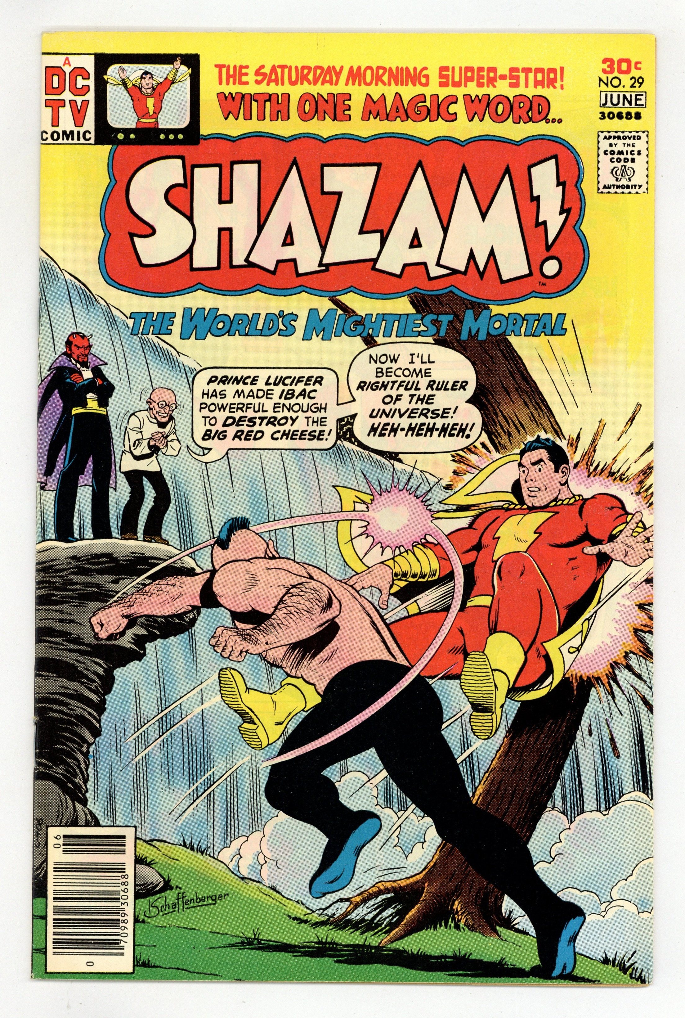 $10.00Cover by Kurt Schaffenberger. Ibac Meets Aunt Minerva!, script by E. Nelson Bridwell, art by Kurt Schaffenberger and Vince Colletta; Sivana plans to blow up Niagara Falls with the help of Ibac and Aunt Minerva. Mike Fleisher profile by Mike Gold. Hostess snack cake ad with Batman, art by Curt Swan and Vince Colletta. 36 pgs., full color. $0.30. Cover price $0.30.