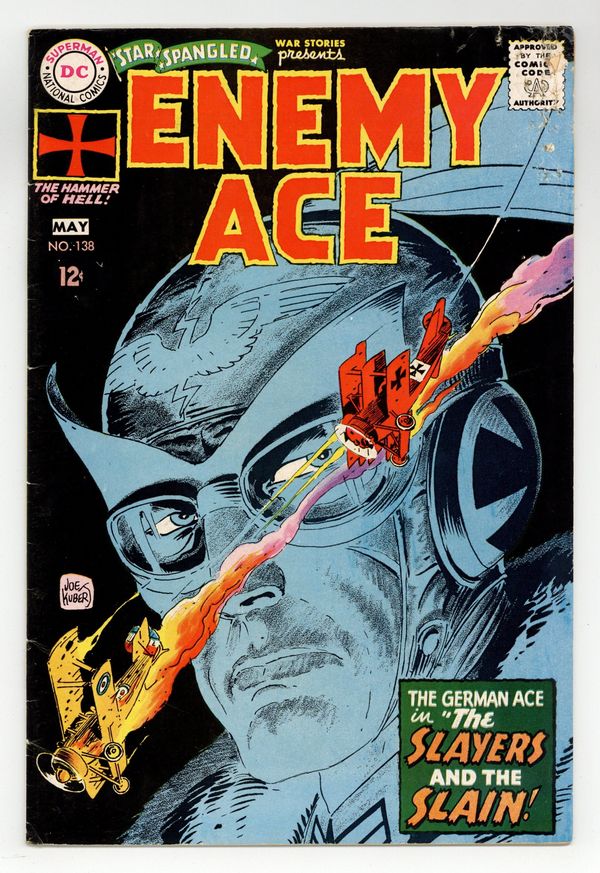 Cover art by Joe Kubert. The Slayers and the Slain! featuring Enemy Ace, script by Robert Kanigher, art by Joe Kubert; Enemy Ace faces The Hangman, the top French ace and his all-black Spad, and barely survives being shot down. Deadman promo ad, art by Neal Adams. Ad for Flash 178, pencils by Ross Andru, inks by Mike Esposito. Direct Currents promo ads, art by Neal Adams. 36 Pages, Full Color. Cover price $0.12.
