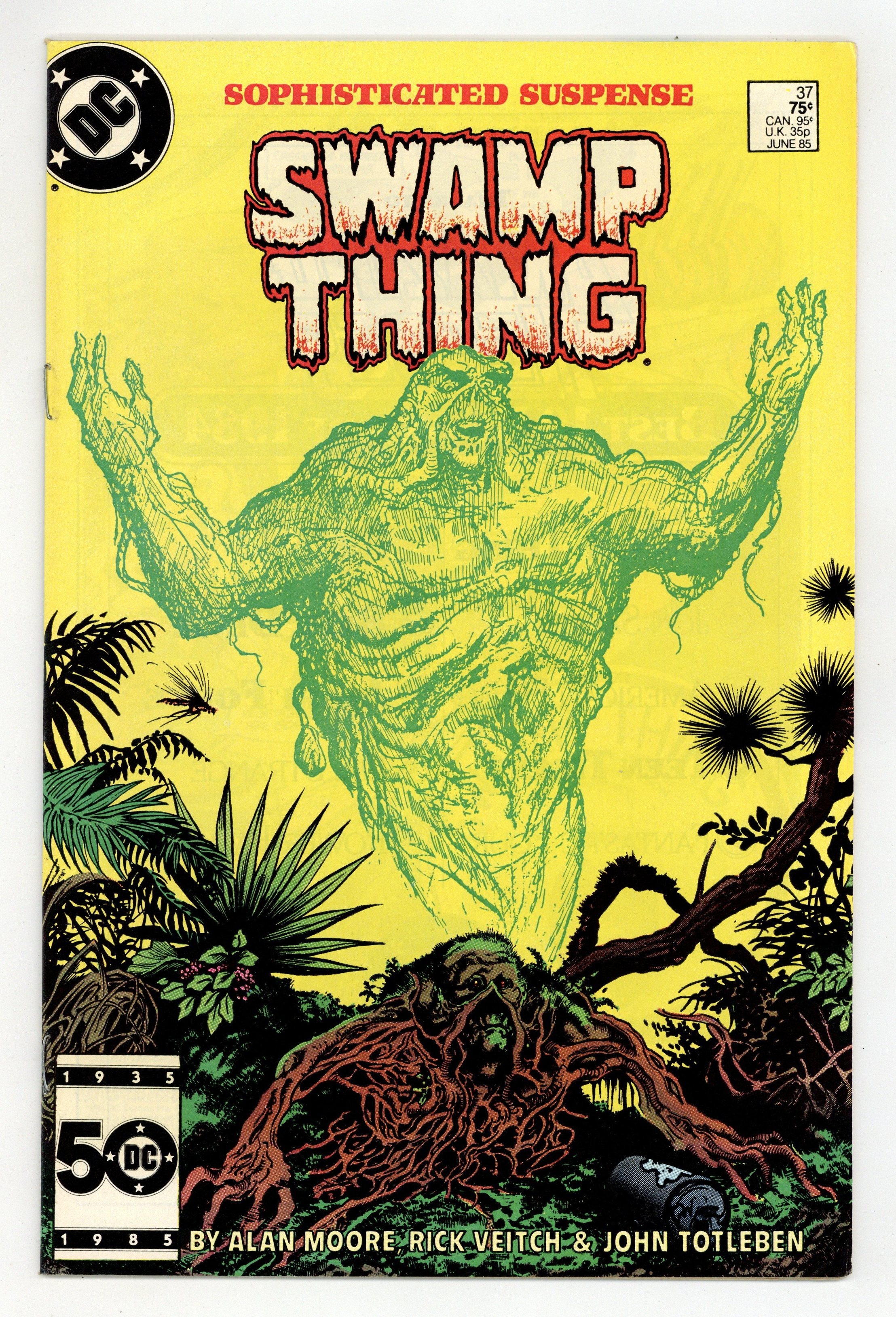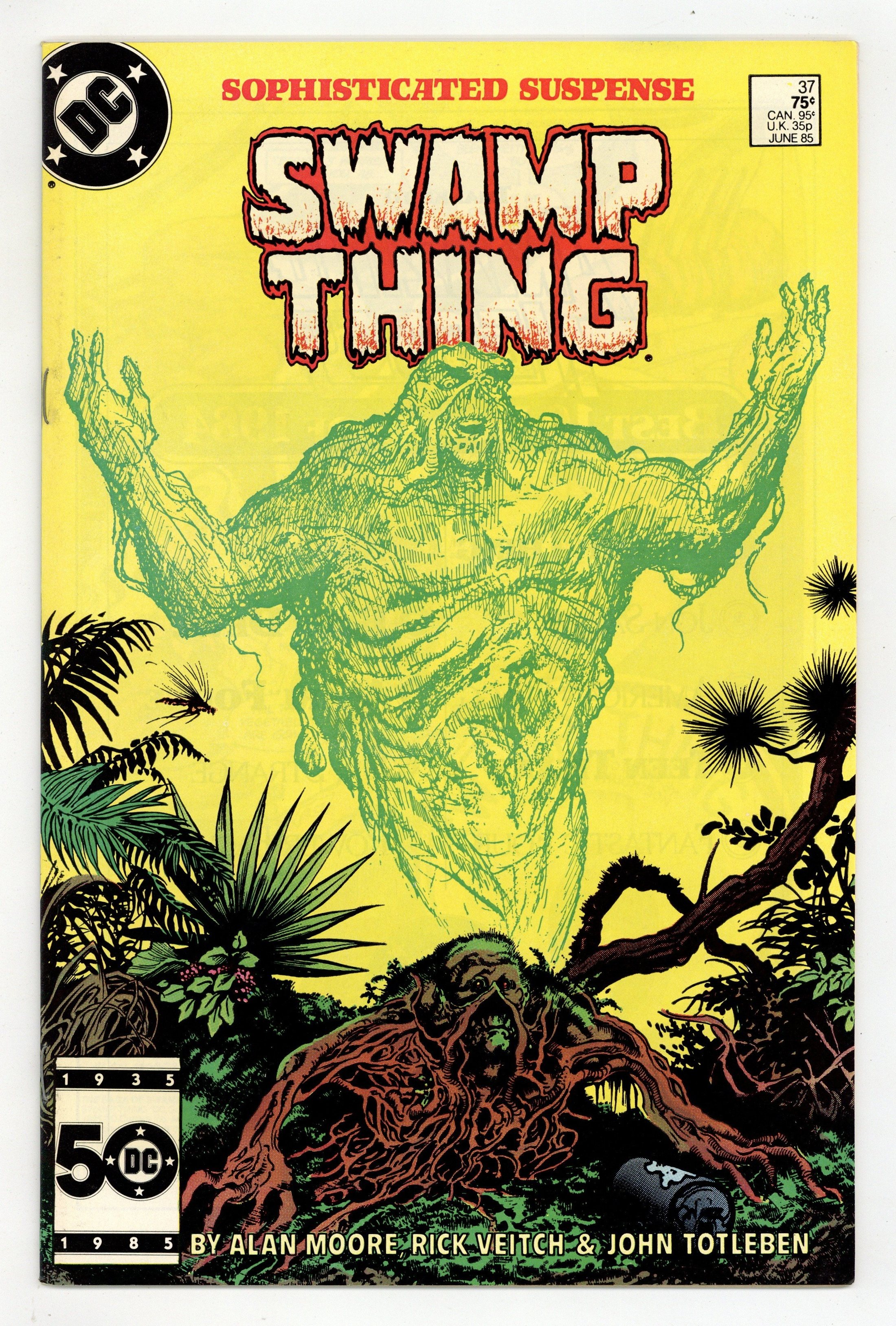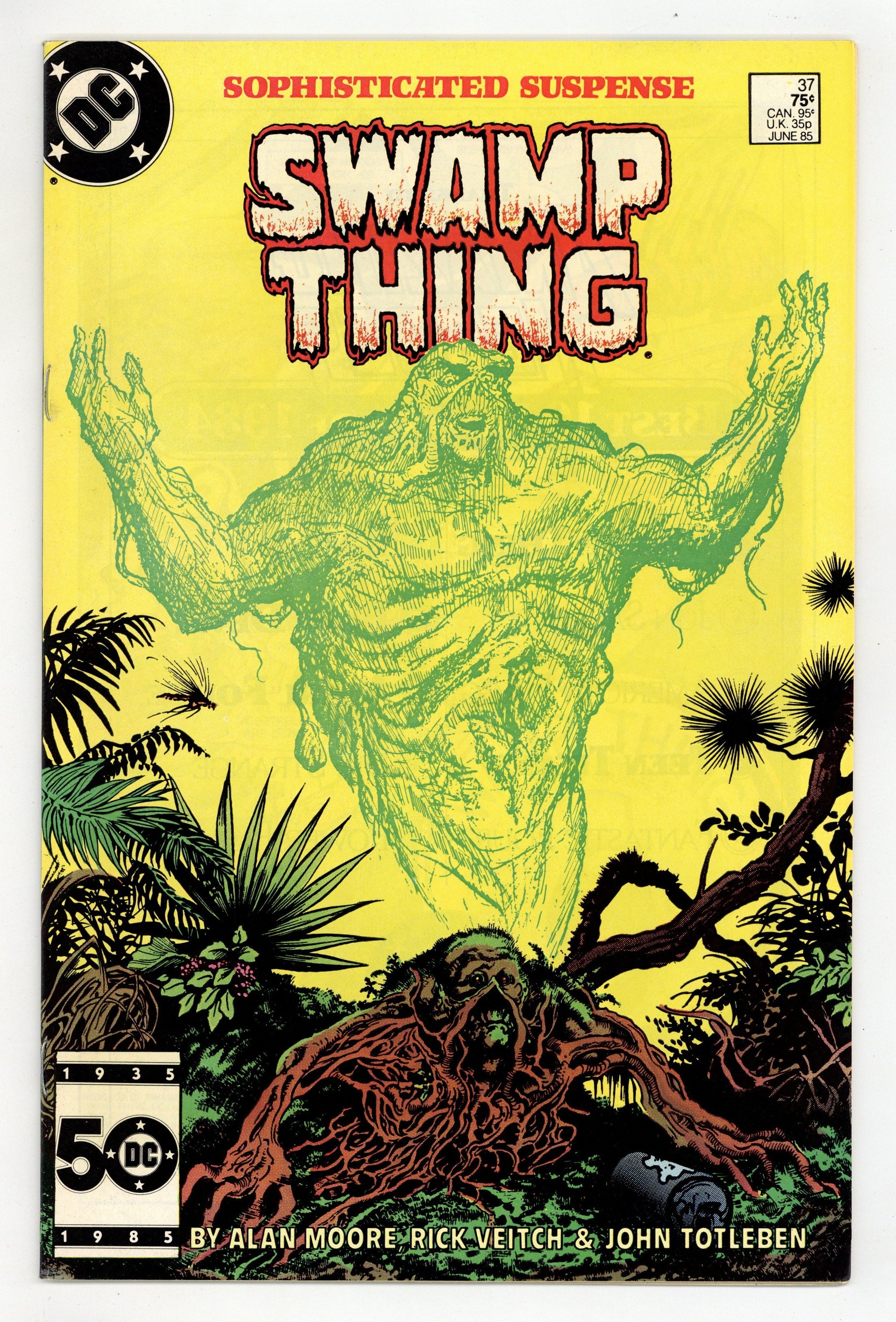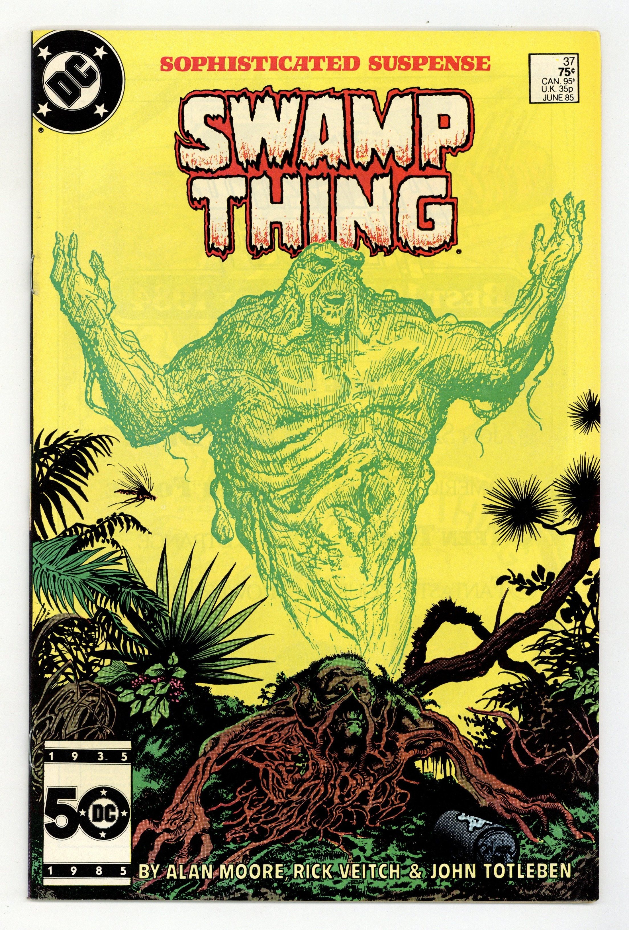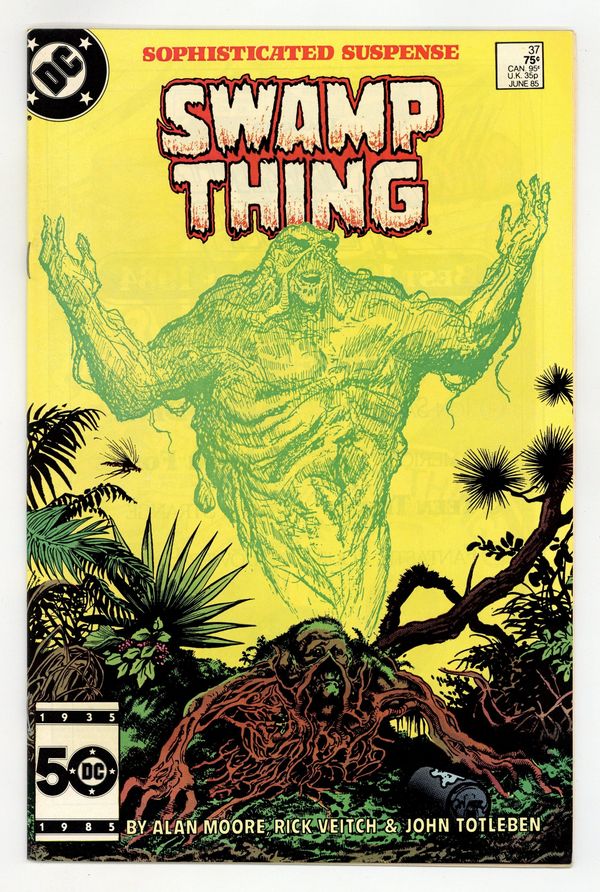 Direct Edition. "Growth Patterns!" Written by Alan Moore, with art by Rick Veitch and John Totleben. Cover by Stephen Bissette and Totleben. New "Growth Patterns" and other strange abilities emerge in Swamp Thing as he fights for survival. NOTE: 1st appearance of John Constantine, Hellblazer. 36 pages, full color. Cover price $0.75.