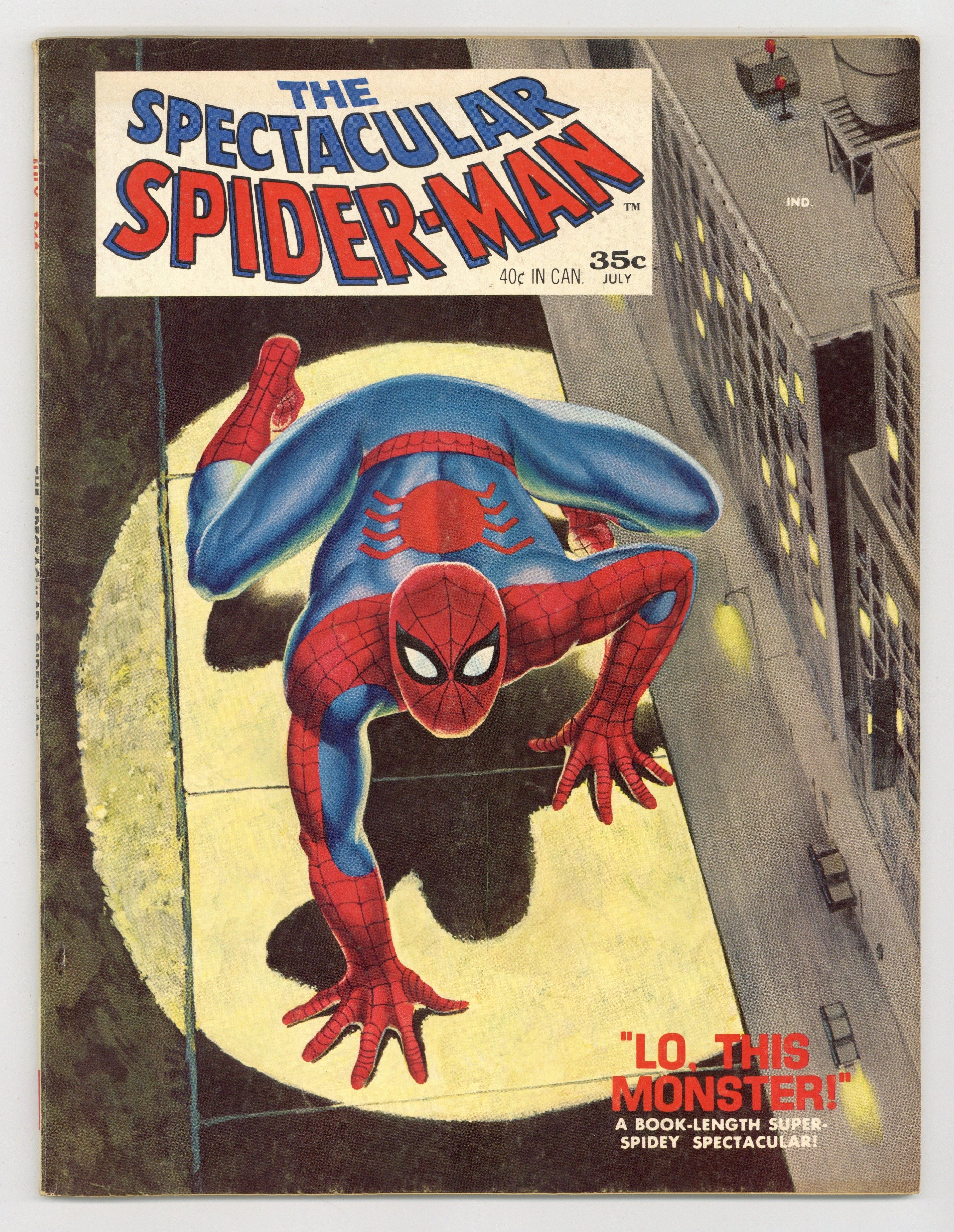 Tags: Spider-Man$60.00Vol. 1, No. 1. July 1968. Written by Stan Lee. Illustrated by John Romita and Jim Mooney on 52 page story, plus updated origin back up story featuring art by Bill Everett. 8.25" x 11". 68 pages. Black and white. Cover price $0.35.