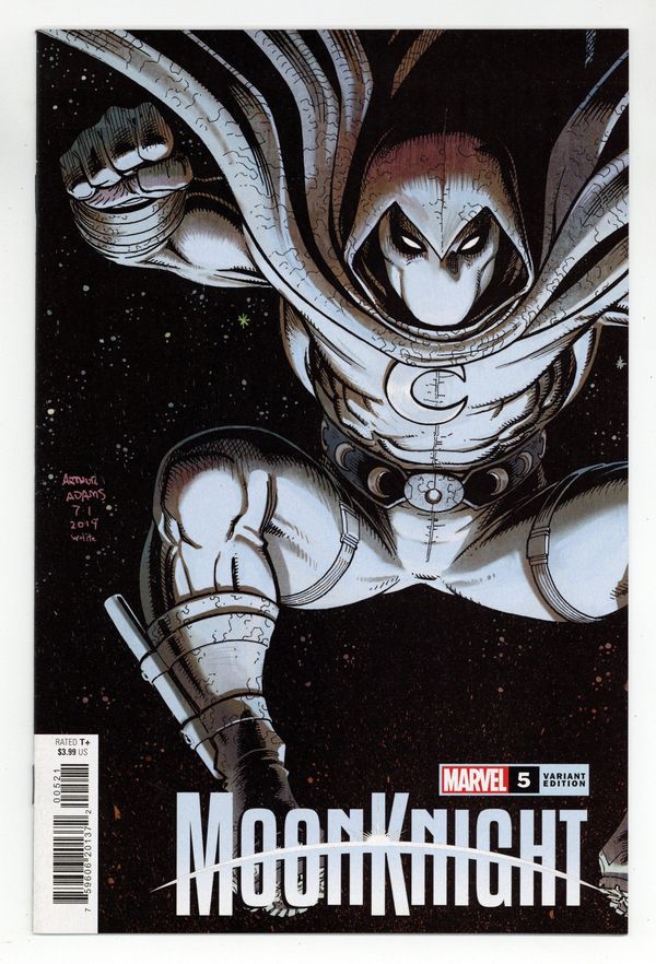 Tags: Marvel Legacy Numbering: Moon Knight (part 205), Moon Knight$10.00Limited 1 for 25 Retailer Incentive Variant Cover. Horoscope: Part 1 - Written by Jed MacKay. Art by Alessandro Cappuccio. Cover by Arthur Adams. Moon Knights hidden enemy is revealed — but revealed is not the same as caught, and he soon finds masks beneath masks as he hunts his way after his new nemesis. At the same time, Dr. Andrea Sterman pierces Moon Knights own mask and, for the first time, gets some honest answers. 28 pages, full color. Rated T+ Cover price $3.99.