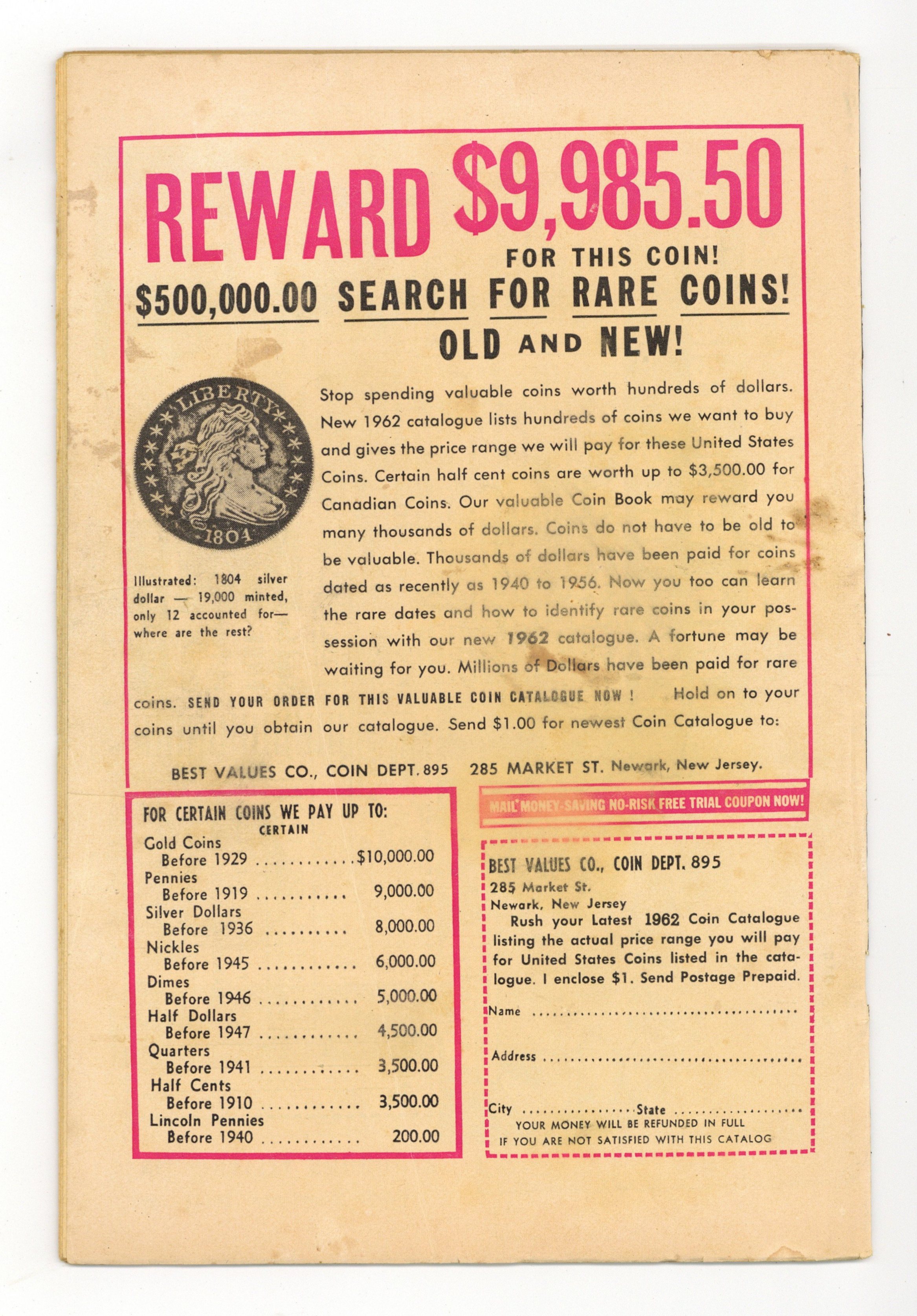 - RESTORATION. Color touch. 1" Spine split from bottom. Cover glued to first wrap. Centerfold detached at one staple.