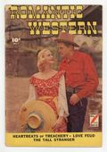 Stories and art by Edd Ashe, Ed Robbins, Rod Reed and Max Elkan. For those who prefer romance with a little Southwestern seasoning, Fawcett presents tales of love on the range. Susan falls for heroic singing cowboy Doug, but his heart belongs to the open range. A fifty-year feud between the Barkers and the neighboring Jacksons heats up when Janie Jackson and Lin Barker fall in love. Ranch owner Laura is as tough as any cowboy, but when rustlers target her cattle, she's willing to accept the help of handsome wandering cowpoke Rod Foster. Heartbeat of Treachery; Love Feud; Sky Riders; The Tall Stranger. 32 pages, Full Color. Cover price $0.10.