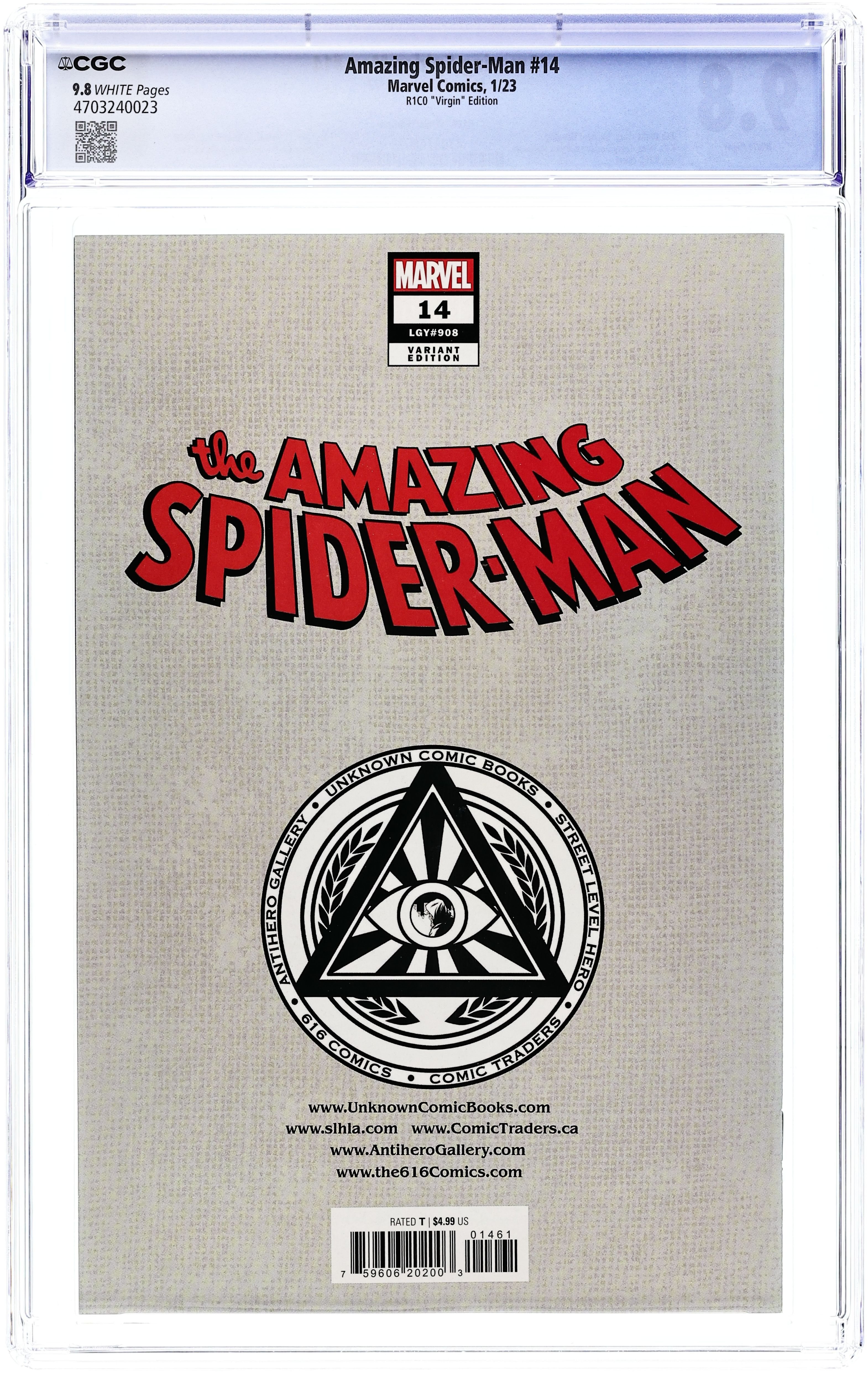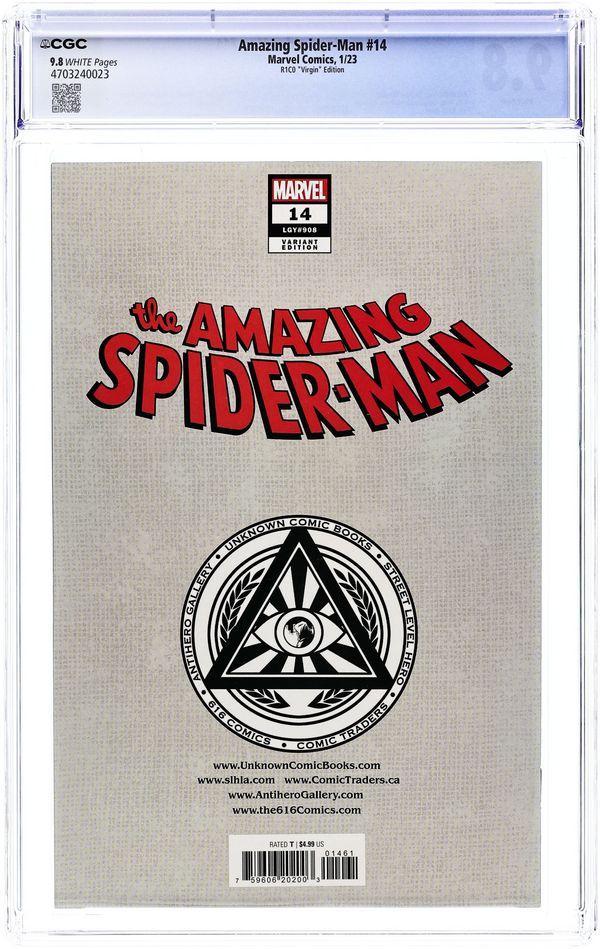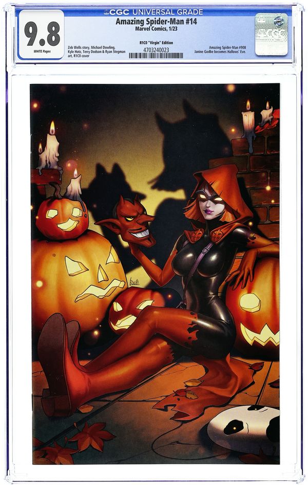 Comics Illuminati (Unknown Comics, Street Level Hero, Comic Traders, Anti-Hero Gallery, and The 616 Comics) Exclusive Virgin Cover by R1C0. Written by Zeb Wells. Art by Michael Dowling; Kyle Hotz; Terry Dodson. "DARK WEB" PRELUDE! We haven't seen Chasm since ASM #894 and the FCBD issue, but that doesn't mean he hasn't been busy. Join us for this very special issue featuring Spidey's most dangerous new villain as well as the Goblin Queen and a BRAND-NEW villain that you won't believe. 36 pages, full color. Rated T