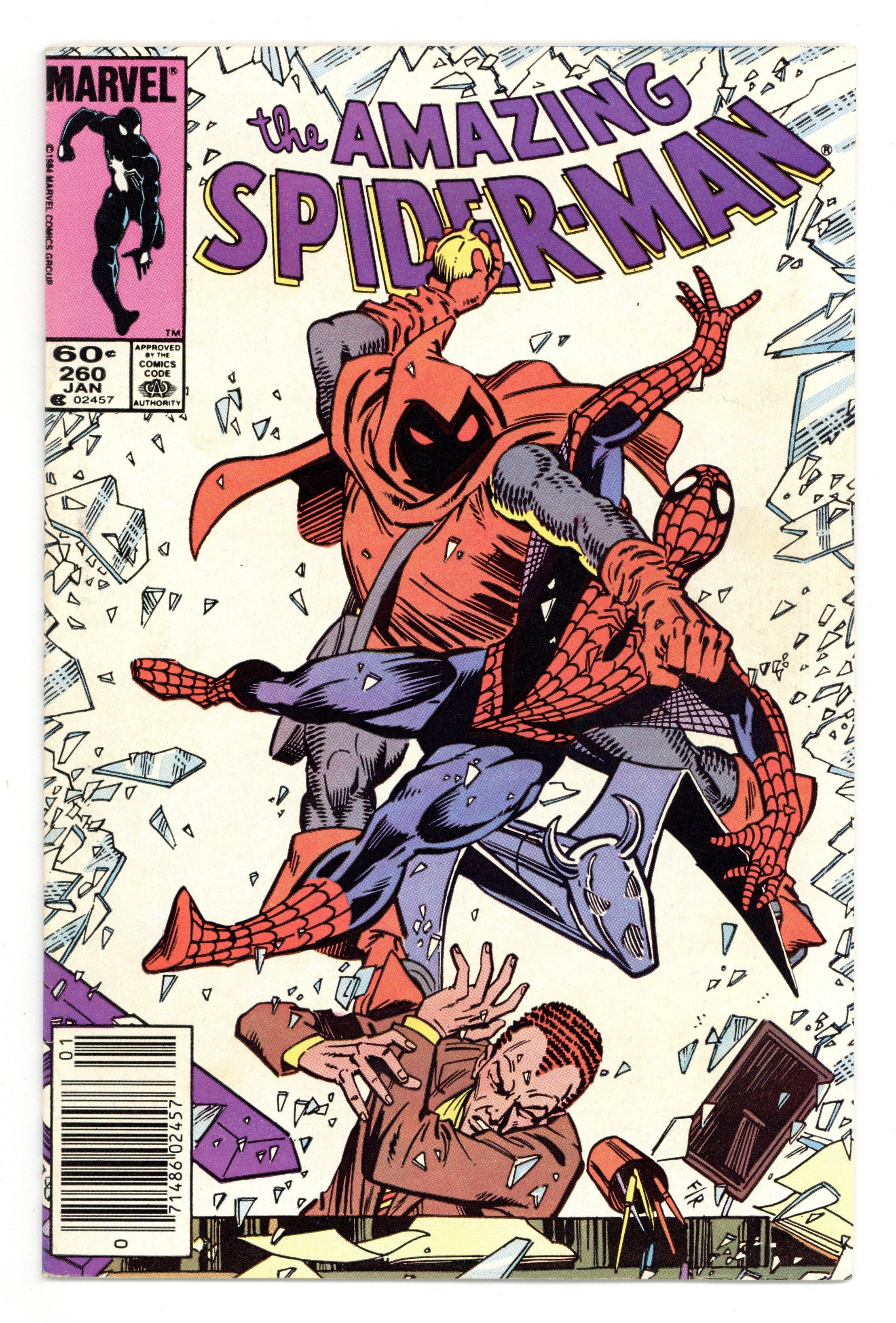 Tags: Spider-Man$15.00Newsstand Edition. "The Challenge of Hobgoblin!" Script by Tom DeFalco. Pencils by Ron Frenz. Inks by Joe Rubinstein and Brett Breeding. Cover by Ron Frenz and Joe Rubinstein. The Hobgoblin and the Rose unleash their two-pronged attack on Harry Osborn! The goblin ambushes Harry at his corporate office, while the Rose's henchmen kidnap Liz Osborn and Mary Jane! Auspiciously, the wondrous wall-crawler is close by to lock horns with the Hobgoblin! But who is going to save MJ and Harry's expectant wife? Could it be the Green Goblin?! Stay tuned! Cameo appearances by Aunt May, Betty Brant Leeds, Joe Robertson, J. Jonah Jameson, Susan Richards, Franklin Richards, and the alien symbiote (costume). (Note: This story was reprinted in Marvel Tales 274.) 36 pgs. Cover price $0.60.