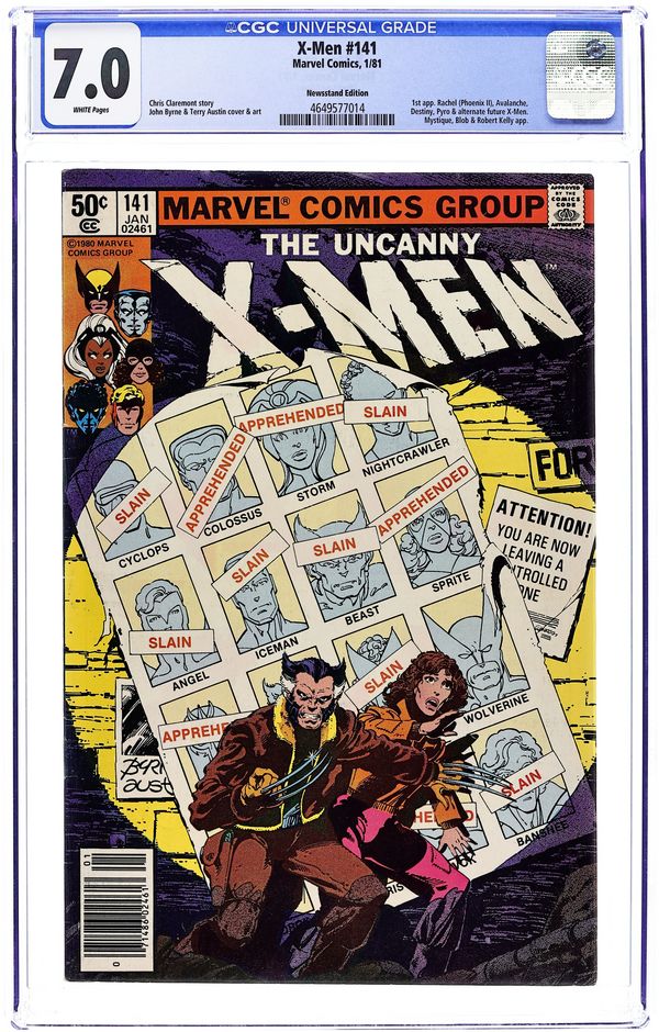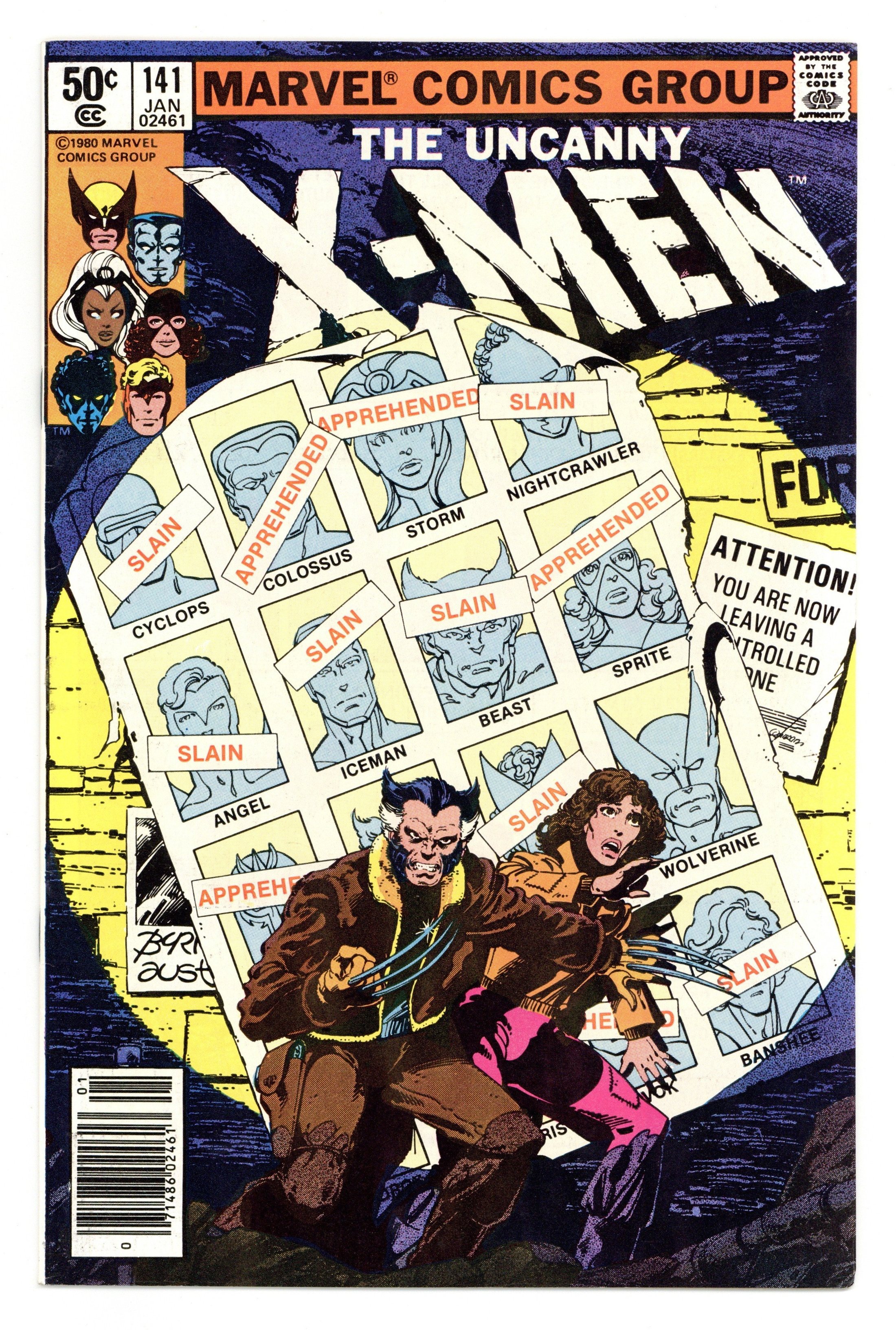 Newsstand Edition. Days of Future Past: Part 1 of 2. Story by Chris Claremont and John Byrne. Art by John Byrne and Terry Austin. The New Brotherhood of Evil Mutants set out to assassinate a prominent senator, and if the X-Men can't stop them the fate of mutant-kind will be sealed. Get your first glimpse of the dystopian post-apocalyptic future that will come to pass if Xavier's dream dies. Welcome to "Days of Future Past!" NOTE: 1st appearances of Rachel Summers (Phoenix II), Senator Kelly, Mystique, Destiny, Avalanche, and Pyro. 36 pgs. Cover price $0.50.