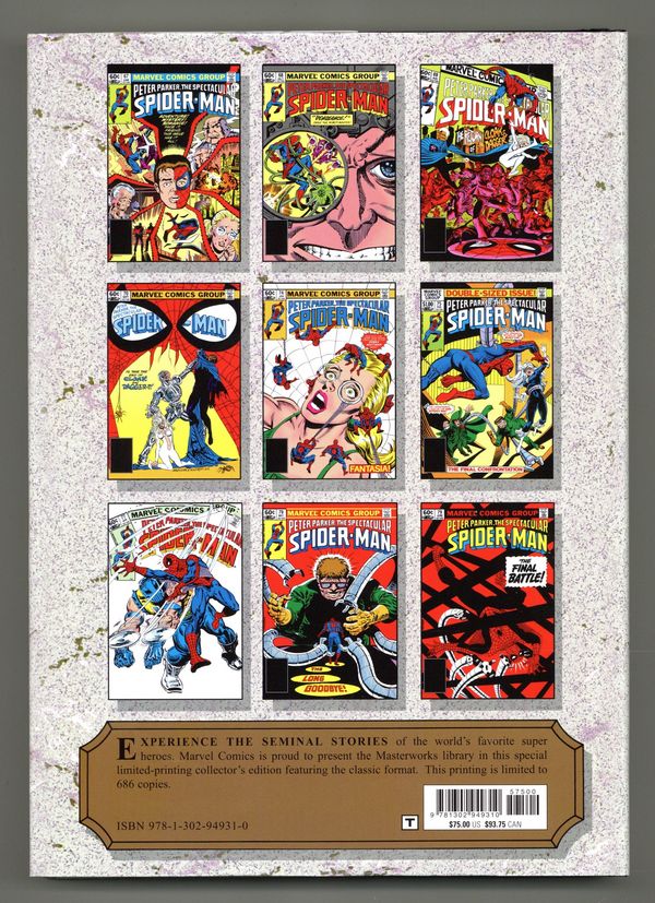 Volume 343 - 1st printing. "[Peter Parker] The Spectacular Spider-Man: Book 6!" Collects [Peter Parker,] The Spectacular Spider-Man (1976-1998 1st Series) #67-79. Written by Bill Mantlo and Tom DeFalco. Art by Ed Hannigan, Al Milgrom, Luke McDonnell, Jim Mooney, Rick Leonardi, Rick Magyar, and Bob Hall. Cover by Al Milgrom. Introduction by Ralph Macchio. THE SPECTACULAR SPIDER-MAN hits high gear! Writer Bill Mantlo crafted a compelling, interwoven series of adventures in his second tenure on the title. Pairing Spidey with the Black Cat as both partner and love interest, Mantlo fused the crime drama of the Kingpin with larger-than-life villains like Doctor Octopus - and the formula made SPECTACULAR a page-turning powerhouse! It begins when the Kingpin hires Boomerang, the killer who keeps coming back. Meanwhile, Cloak and Dagger wage war on drugs as the gangster Silvermane clings to life in a new cyborg body! And when Doctor Octopus and the Owl vie to take over New York's criminal underworld, total war breaks out across the city! See why "The Owl/Octopus War" is a saga that ranks among Spider-Man's greatest! Hardcover, 336 pages, full color. Rated T Cover price $75.00.