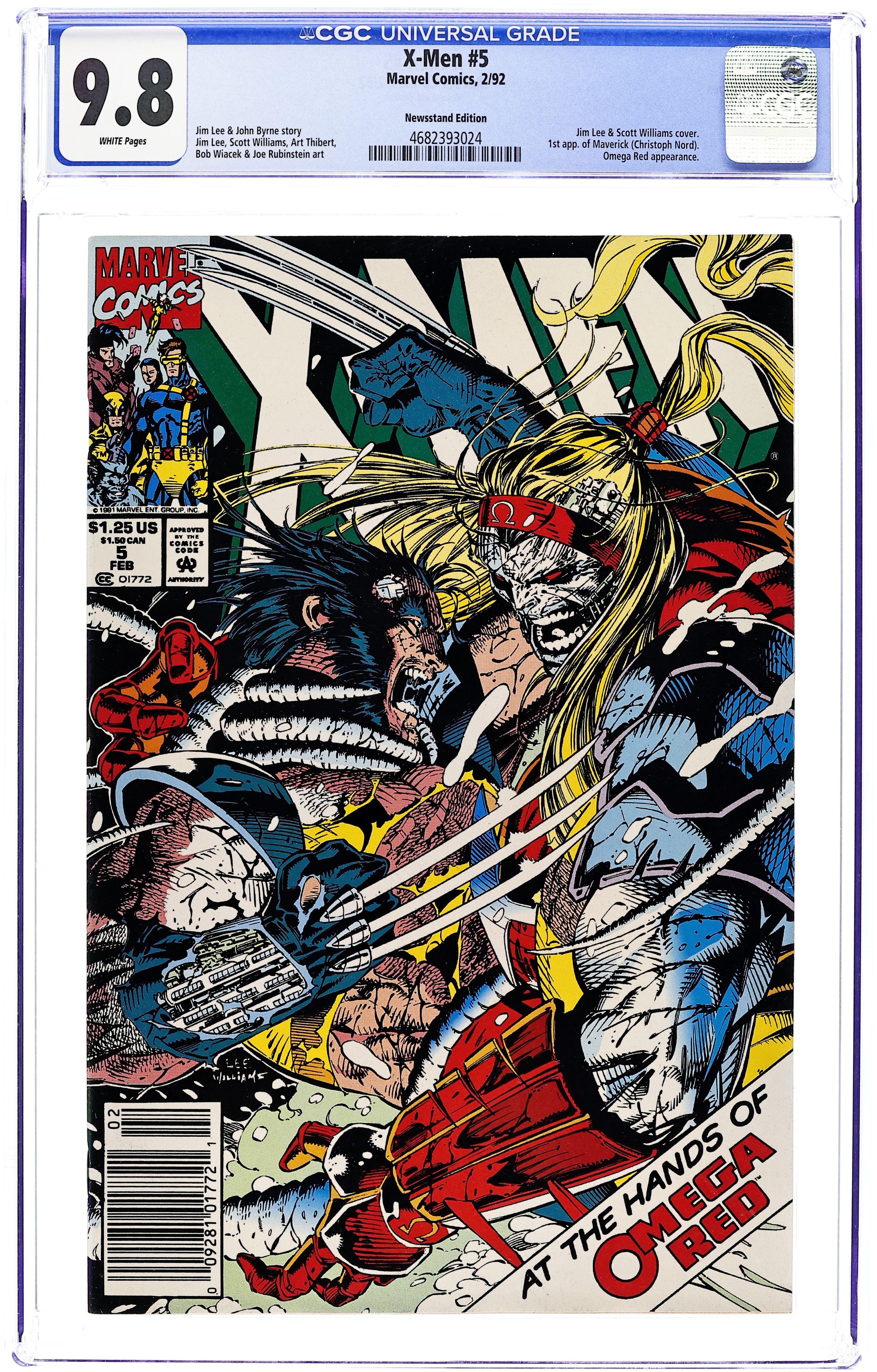 Newsstand Edition. Cover pencils by Jim Lee, inks by Scott Williams. Blowback, script by Jim Lee (Plot) and John Byrne, pencils by Jim Lee, inks by Scott Williams, Art Thibert, Bob Wiacek, and Joe Rubinstein; Wolverine is captured by Omega Red and Fenris so they can probe his memories to find a Carbonadium Synthesizer that has been lost for 30 years; Wolvie escapes with the help of an old friend; The X-Men come after him as well; story takes place before and leads into Uncanny X-Men #281. 36 pgs. $1.25. Cover price $1.25.