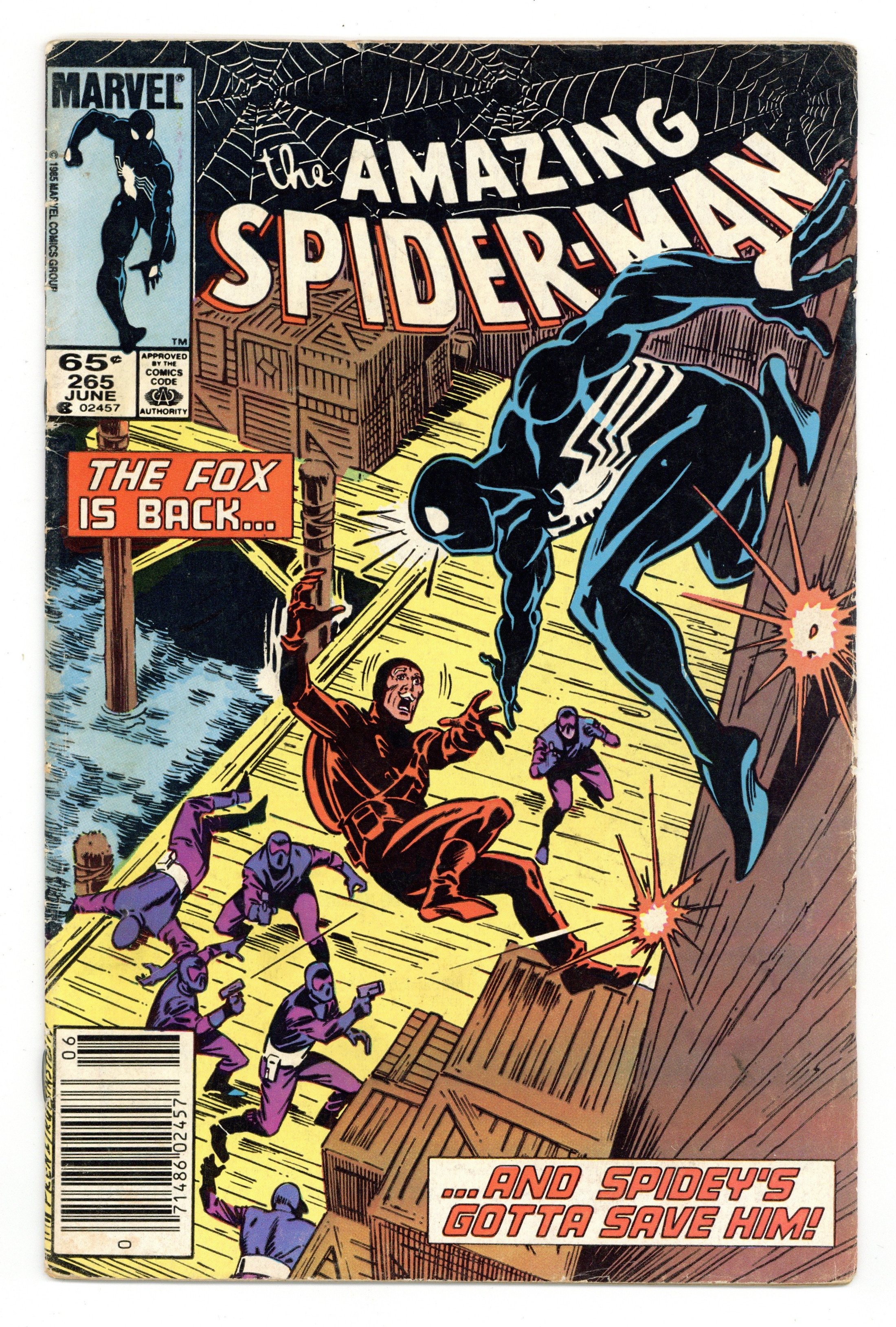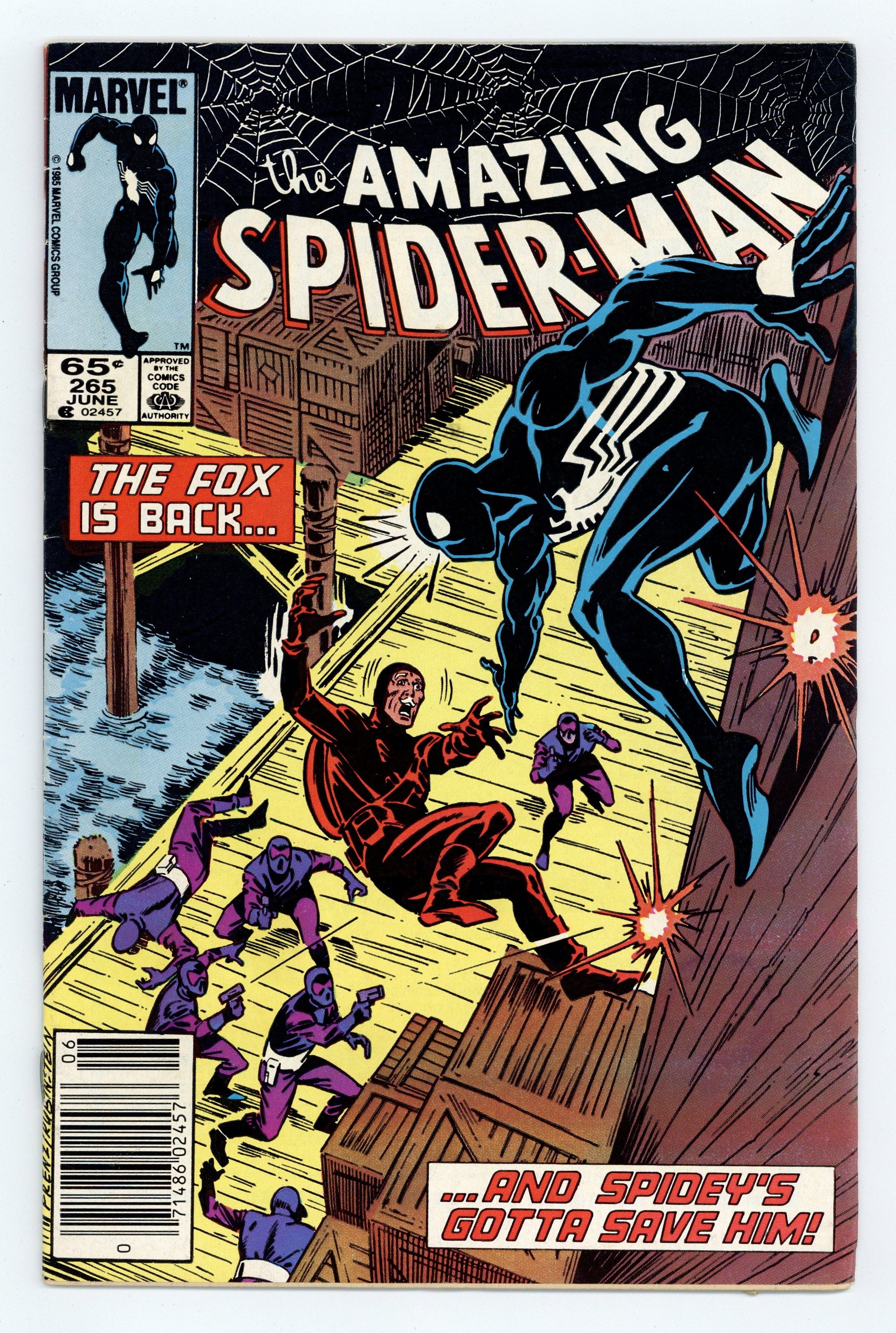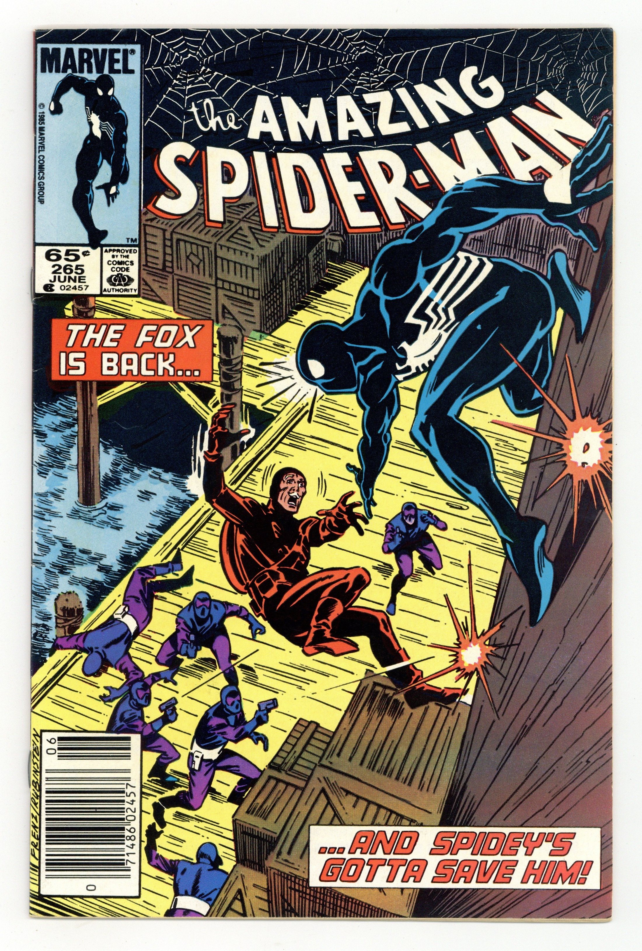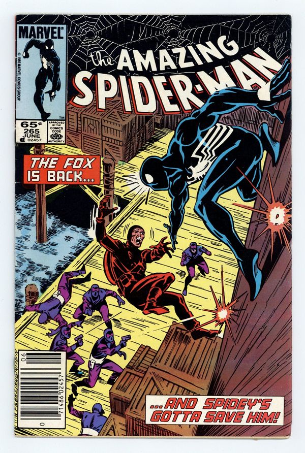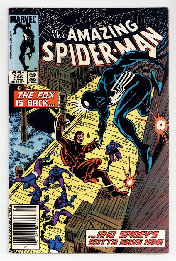 First printing. Newsstand Edition. First appearance of Silver Sable. Script by Tom DeFalco. Pencils by Ron Frenz. Inks by Joe Rubinstein. Cover by Ron Frenz and Joe Rubinstein. "After the Fox!". The Black Fox is on the run! But it's not the Spectacular Spider-Man who's chasing him! It's Silver Sable! An adventurer for hire from the European country of Symkaria! Silver Sable and her Wild Pack pursue the fox through the streets of Manhattan and then later corner him on the waterfront! However, the aging international jewel thief has a wall-crawling guardian angel! Down on the docks, the sparks fly as the web-slinger gives Silver Sable a lesson in diplomacy...superhero-style! Second appearance of the Black Fox. Cameo appearances by Aunt May, Mary Jane Watson, Harry Osborn, Liz Osborn, and Normie Osborn. (Notes: Silver Sable appears next in Amazing Spider-Man 279. The Black Fox returns in Web of Spider-Man 14. There is a second printing of this issue published in 1992. The second printing features a gray cover and a yellow dog ear touting the first appearance of Silver Sable. This story was also reprinted in Marvel Tales 277.) 36 pgs. Cover price $0.65.