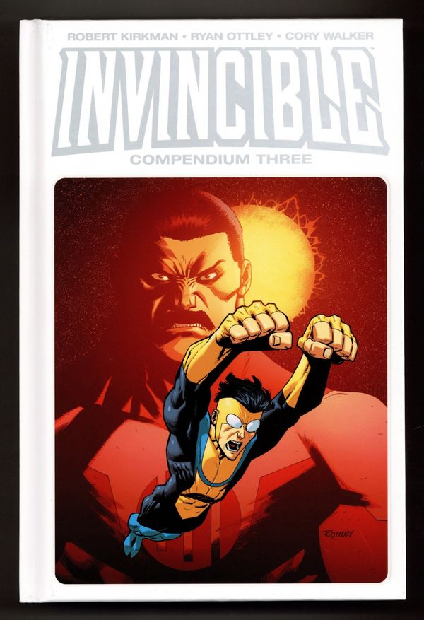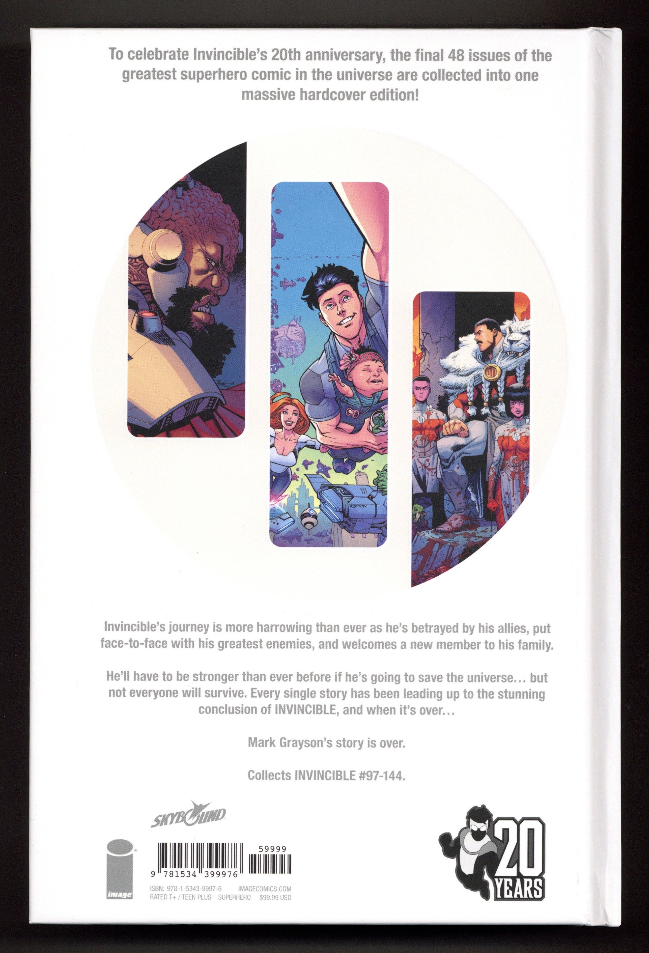 Volume 3 - 1st printing. Collects Invincible (2003-2018) #97-144. Written by Robert Kirkman. Art by Ryan Ottley, Cory Walker, Cliff Rathburn, and Mark Morales. Cover by Ryan Ottley. The year-long celebration of INVINCIBLE's 20th anniversary continues with a direct market-exclusive collecting the final 48 issues of the greatest superhero comic in the universe into one massive hardcover edition! Invincible's journey is more harrowing than ever as he gets betrayed by his allies, goes toe-to-toe with his greatest enemies, and welcomes a new member to his family. He'll have to be stronger than ever before if he's going to save the universe...but not everyone will survive. Every single story has been leading up to the stunning conclusion of INVINCIBLE, and when it's over... Mark Grayson's story is over. Hardcover, 1,112 pages, full color. Cover price $99.99.