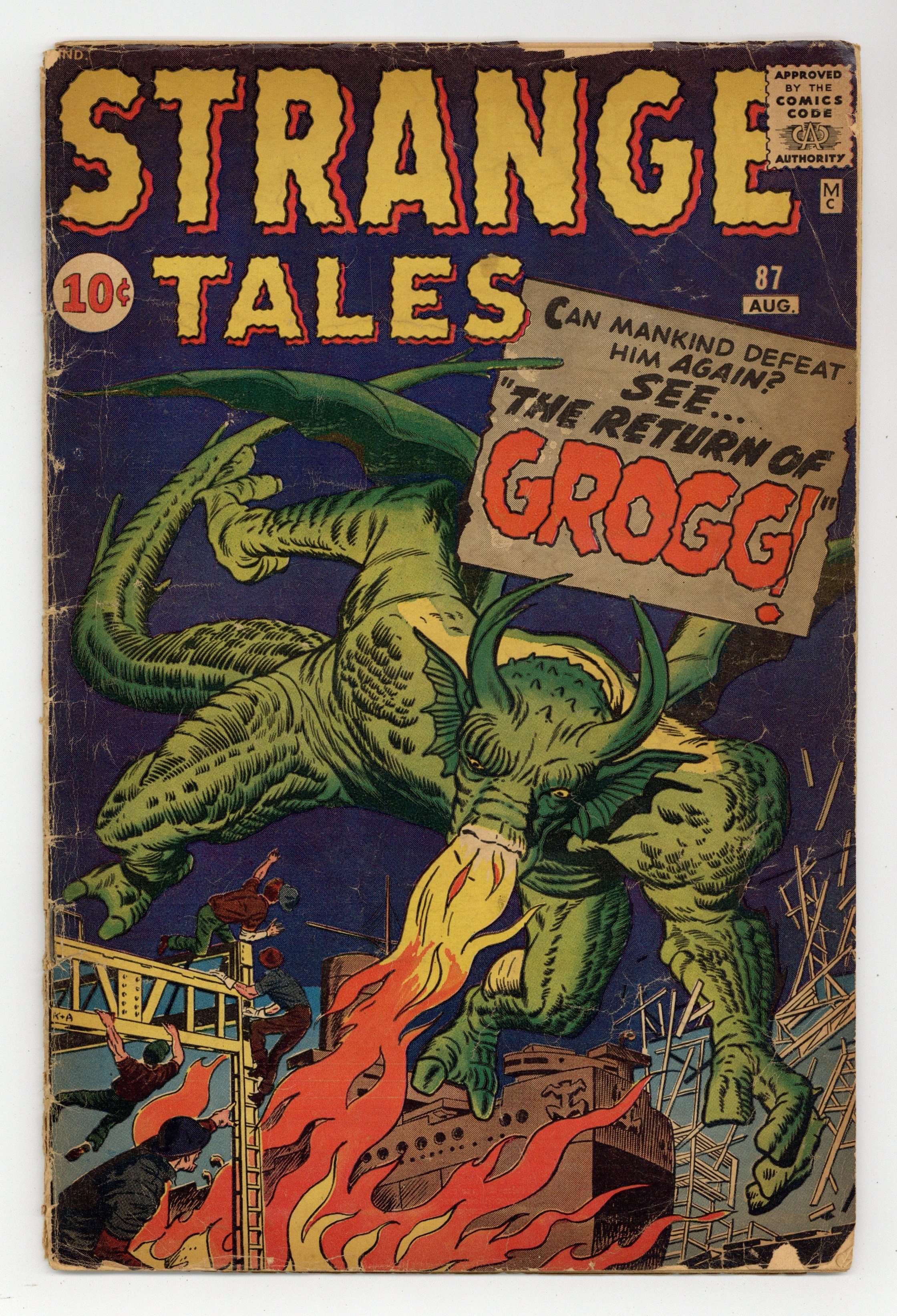 Cover pencils by Jack Kirby, inks by Dick Ayers. "The Return of...Grogg!", pencils by Jack Kirby, inks by Dick Ayers; Koslov is sent back to Russia as a spy, and discovers that the dragon Grogg is still on the loose; He lures Grogg into a Soviet rocket and launches it on its mission to Mars, knowing that if the Soviets ever travel to Mars they will find an enraged dragon. "Peril on Paper" text story. "The Lighthouse from Nowhere!", art by Steve Ditko; A lighthouse appears by a village, but their teacher feels they shouldnt use it unearned and destroys it; They build a new one, never knowing that the first was a beacon for an alien invasion, now aborted. "The Macabre Mirror!", art by Don Heck; A greedy duke taxes his people into poverty; When he ignores a gypsy's warnings and tries to seize her ancient mirror he finds himself imprisoned within it forever, freeing his subjects. 36 pgs., full color. Cover price $0.10.