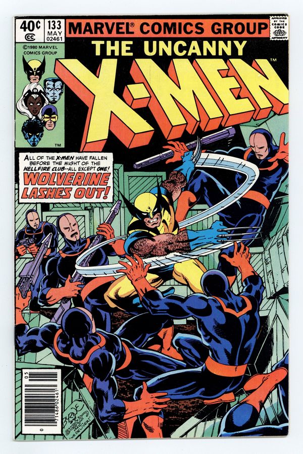 Newsstand Edition. The Dark Phoenix Saga: Part 5 of 9 - "Wolverine: Alone!" Story by Chris Claremont and John Byrne. Art by John Byrne and Terry Austin. The X-Men have been battered and beaten by the Inner Circle of the Hellfire Club. Jean Grey has been psychically seduced by Jason Wyngarde, who just so happens to be one of the team's oldest enemies - Mastermind! Jean has become the Club's Black Queen and is poised to murder her friends. However, there's one glitch in the villains' plan, Wolverine. See what happens when the feral X-Man decides to really cut loose. 36 pgs. Cover price $0.40.