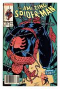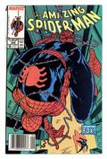 Newsstand Edition. "California Schemin'!" Part 1 of 2. Script by David Michelinie. Pencils by Todd McFarlane. Finishes by Joe Rubinstein. Cover by Todd McFarlane. The Daily Bugle publishes a book featuring Peter Parker's best photos of Spider-Man! And now the Bugle's ace photographer and Mary Jane are on their way to Los Angeles for the publicity tour! It should be all fun in the sun in the city of angels! But Peter's first promotional event at the L.A. civic center hits a snag when an old acquaintance shows up: the Black Fox! The wily fox steals a priceless chalice and the chase is on! Is the web-slinger ready for his Hollywood debut? Cameo appearances by Aunt May, J. Jonah Jameson, and the Prowler. First appearance of Jonathan Caesar. (Notes: The Black Fox previously appeared in Web of Spider-Man 15. The Amazing Spider-Man title was published bi-monthly for the next 5 issues.) 36 pgs. Cover price $1.00.