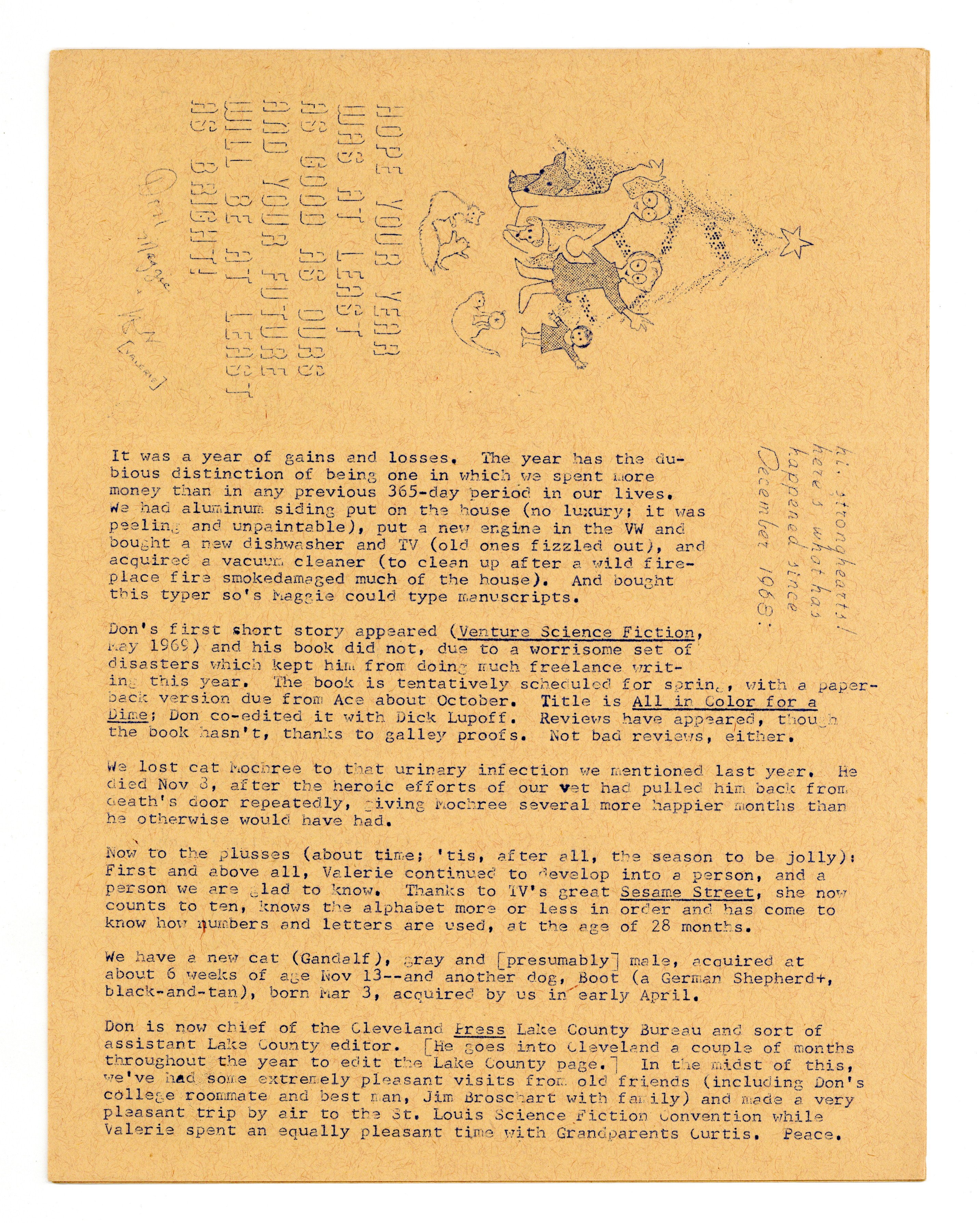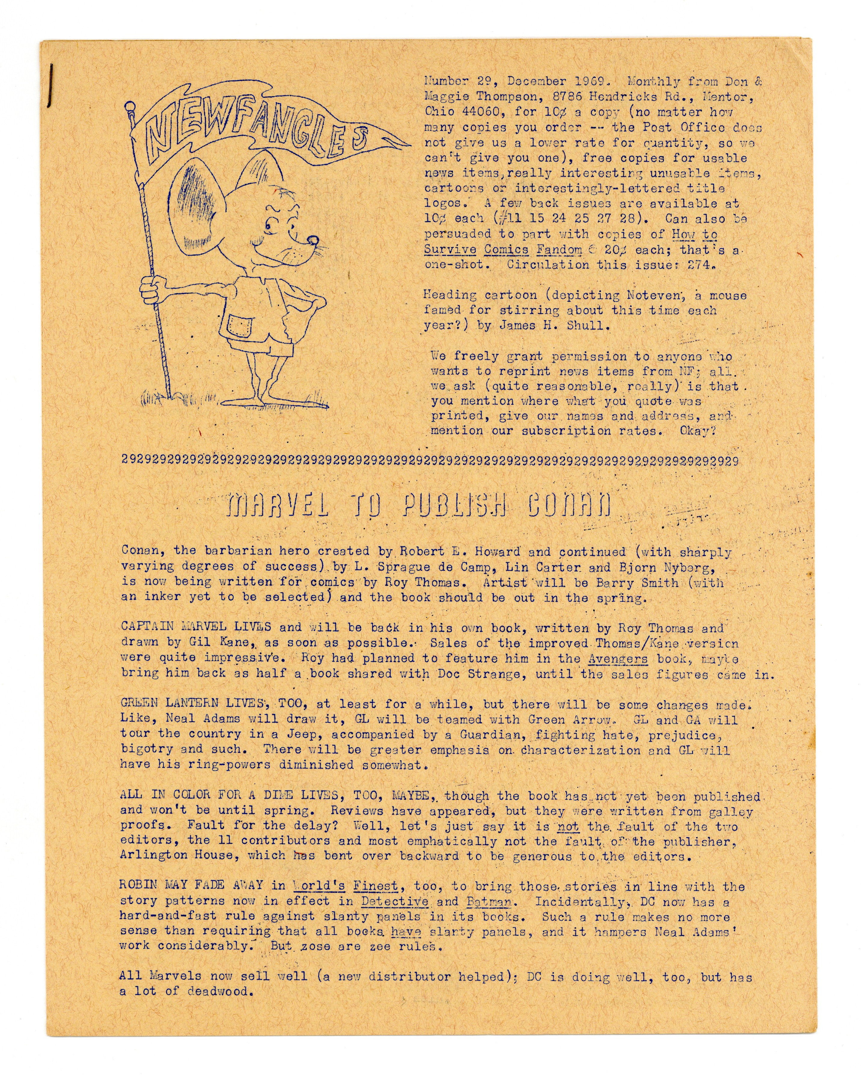 Published Dec 1969 by Don and Maggie Thompson.$40.00News zine published by Don and Maggie Thompson. 6 pages. Circulation 274. Cover price $0.10.