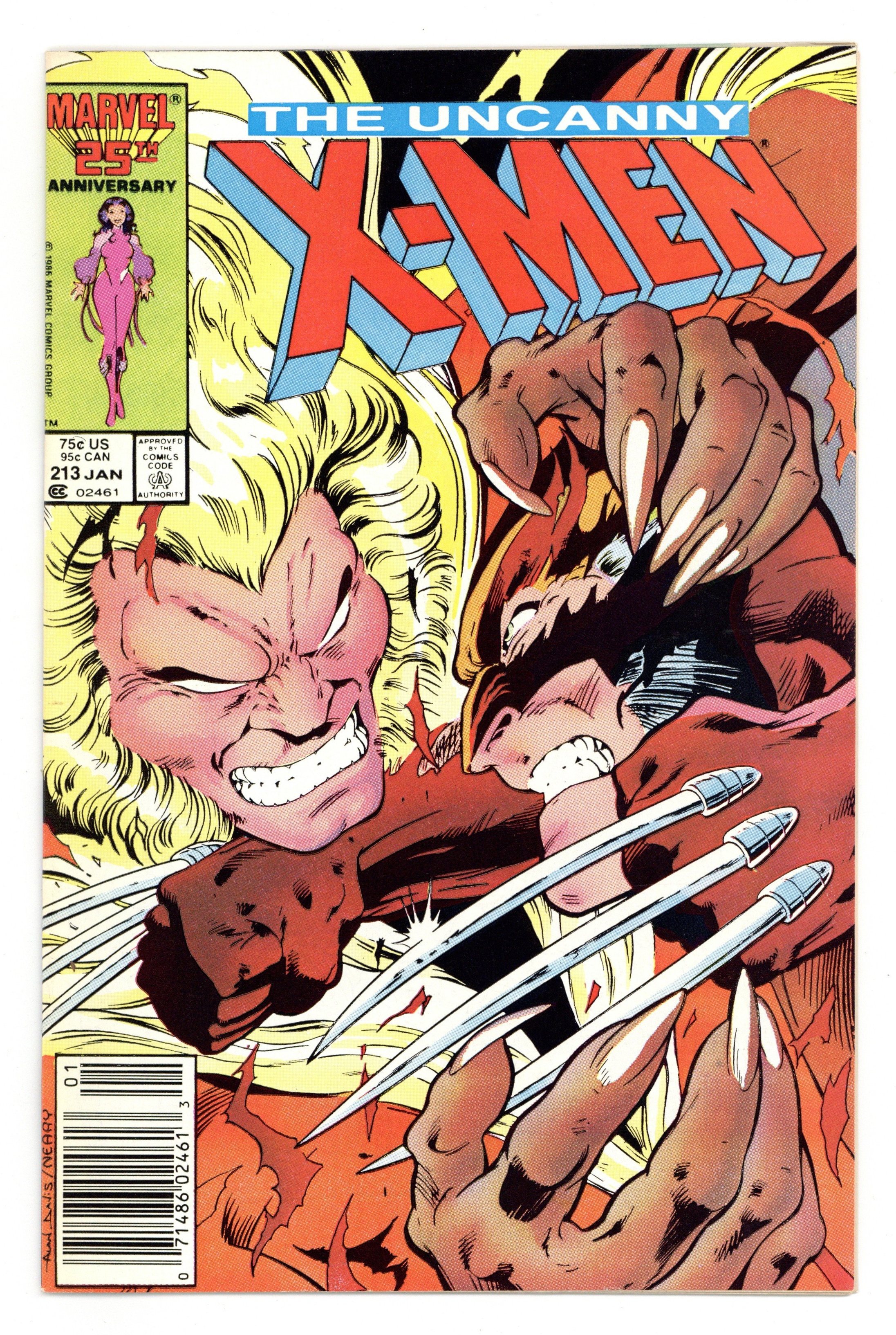 Newsstand Edition. Mutant Massacre tie-in: Wolverine vs. Sabretooth, Round 2: "Psylocke." Story by Chris Claremont. Art by Alan Davis and Paul Neary. This story takes place after the events of Thor (Vol. 1) #374. In order to protect the injured, Psylocke must somehow stall the mutant assassin Sabretooth long enough for the X-Men to return from the Morlock tunnels. What follows is a deadly game of cat and mouse. That will have you on the edge of your seat until the last page is turned. 36 pages, FC Cover price $0.75.