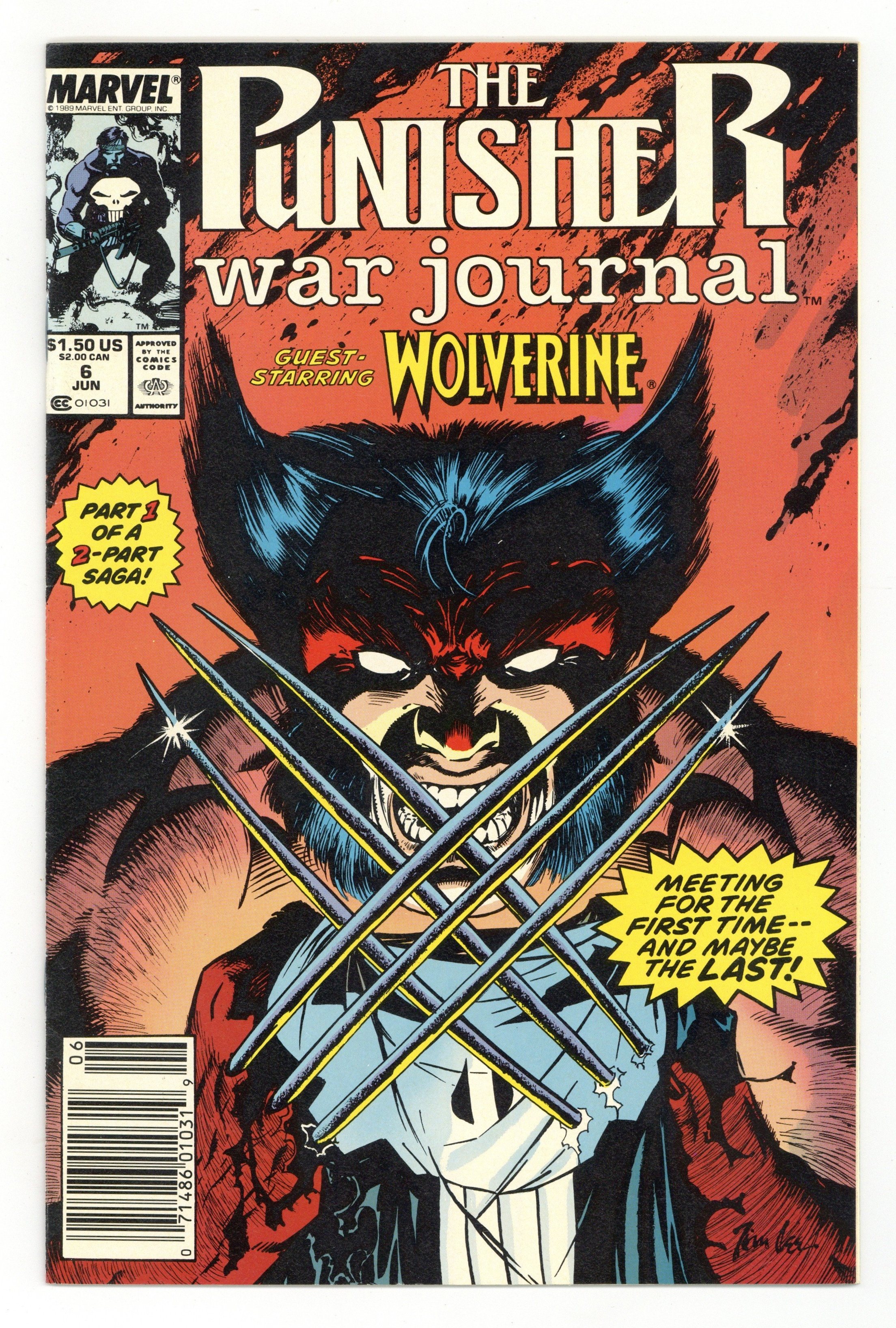 Newsstand Edition. Cover art by Jim Lee. On the Track of Unknown Animals, script by Carl Potts, pencils by Carl Potts and Jim Lee, inks by Jim Lee; at Microchip's behest, Punisher goes to Africa as part of a dinosaur hunting expedition; Punisher battles Wolverine in the African jungle. 36 pgs. $1.50. Cover price $1.50.
