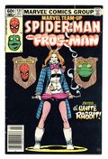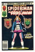 Tags: Spider-Man$28.00Newsstand Edition. "The Best Things In Life Are Free...But Everything Else Costs Money!". Guest-starring Spider-Man and Frog-Man. Script by J.M. DeMatteis. Pencils by Kerry Gammill. Inks by Mike Esposito. Cover by Paul Smith. Eugene Palilio had such a great time playing Frog-Man (in Marvel Team-Up 121) he decides that it's time for another adventure! When an opportunity presents itself during a restaurant robbery, Frog-Man springs into action! Predictably, Eugene gets in over his head against the White Rabbit, so the web-slinger swoops in to rescue his besieged friend! After another close life-and-death call, Eugene will probably wise up and retire...or will he? Not as long as the White Rabbit is on the loose! First appearance of the White Rabbit. Flashback cameo by Daredevil. 36 pages. Cover price $0.60.