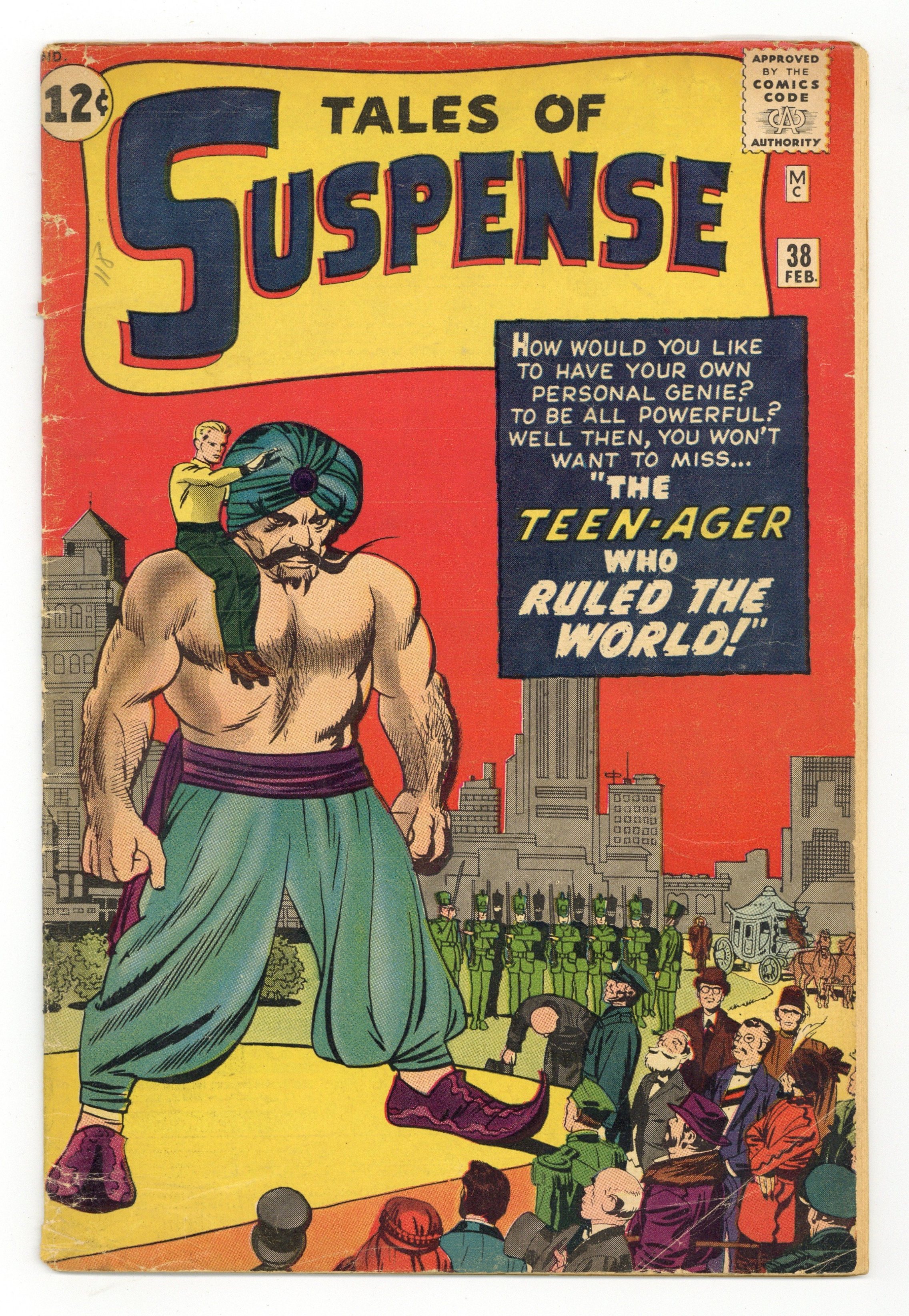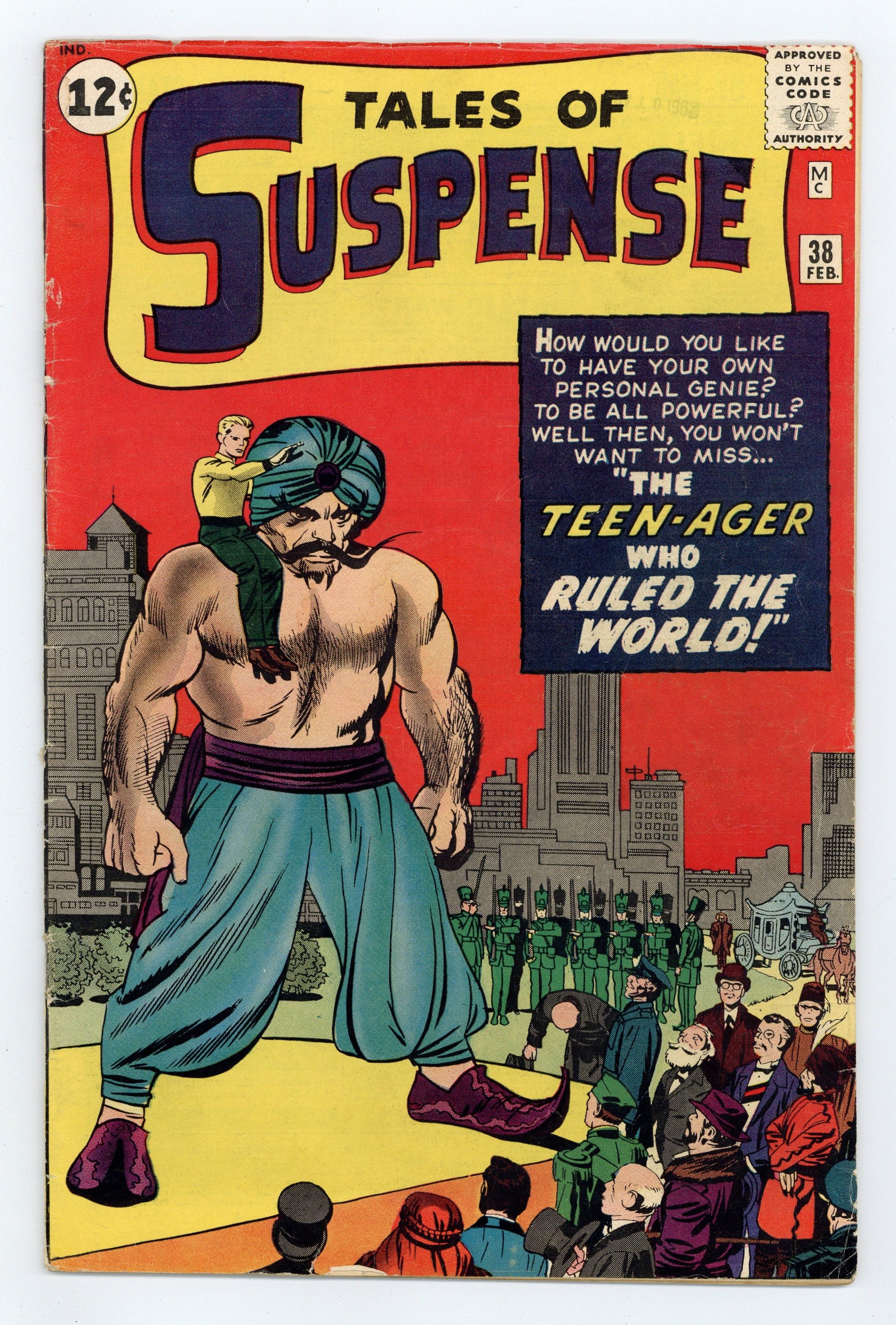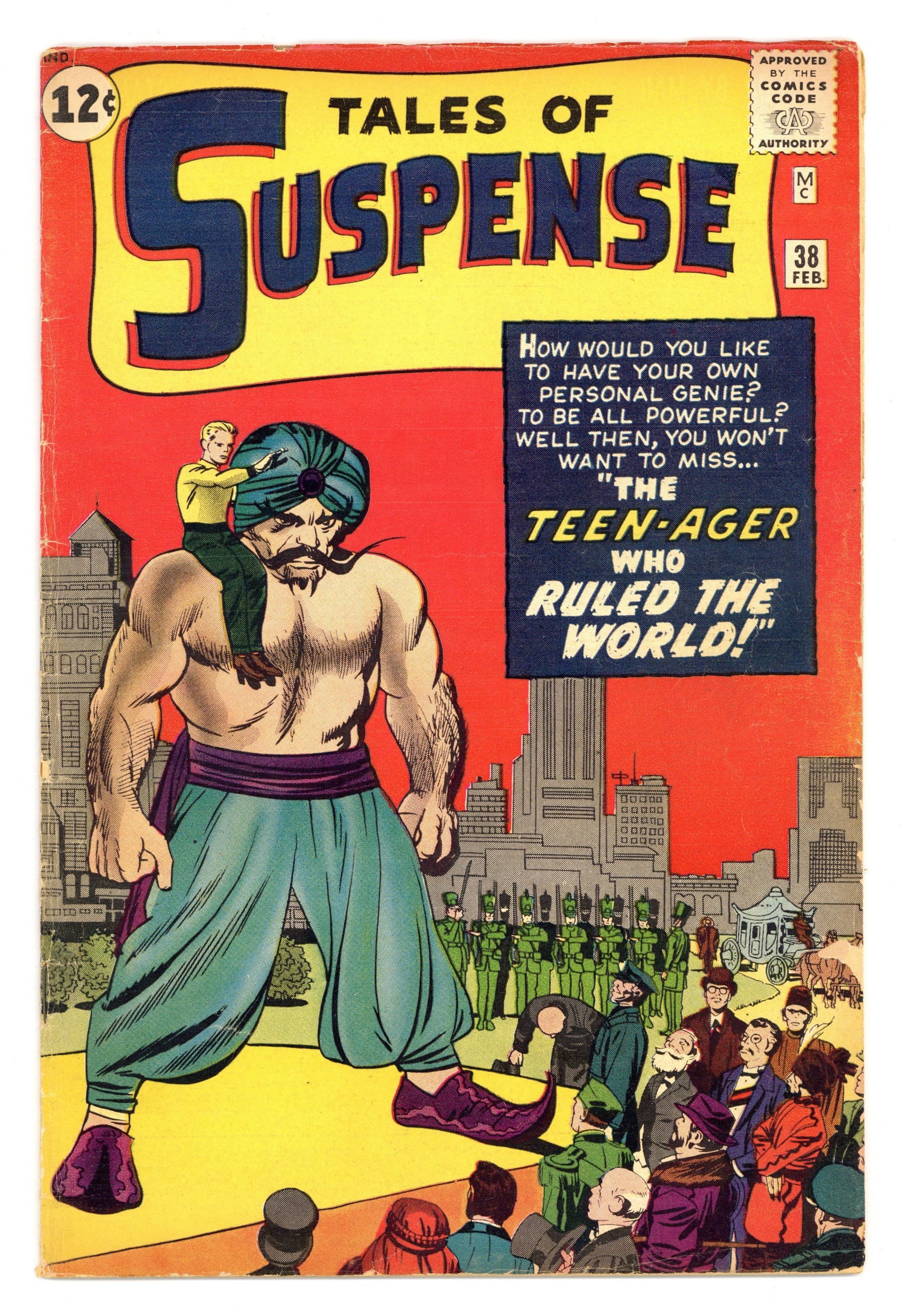 Cover by Jack Kirby. "The Teen-Ager Who Ruled the World!", art by Jack Davis; An arrogant teen-ager finds a genie's lamp and tries to make the world perfect, but finds that all his wishes have unexpected results. "We Can't All Be Human!", script by Stan Lee (plot) and Larry Lieber (script), art by Don Heck; Seemingly friendly aliens arrive on Earth, seeking refuge from pirates, but a philosophy student figures out that the first visitors are the pirates, and disguised themselves to appear pleasant to humans. "Blueprint for Victory" text story. "The Man In The Mirror!", script by Stan Lee, art by Steve Ditko; A millionaire buys an enchanted mirror that allows him to wish any person he dislikes to be trapped inside of it; He wishes dozens of people into the mirror until he is contacted by agents of the IRS who wish to audit his books. 36 pgs., full color. $0.12. Cover price $0.12.