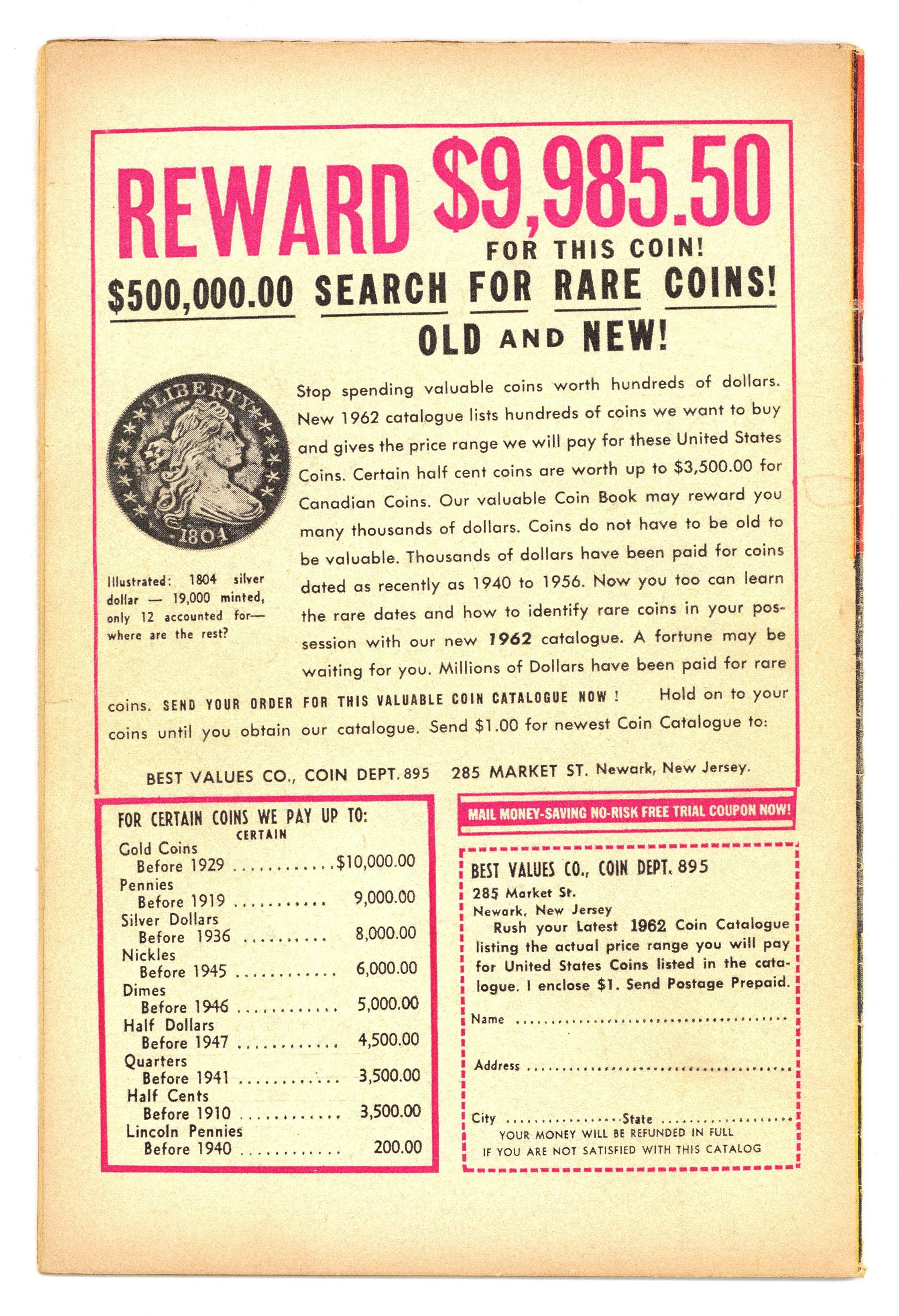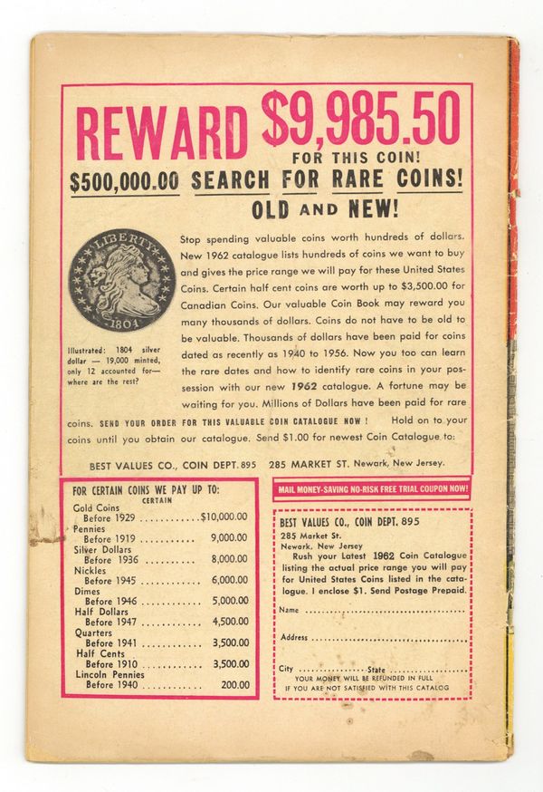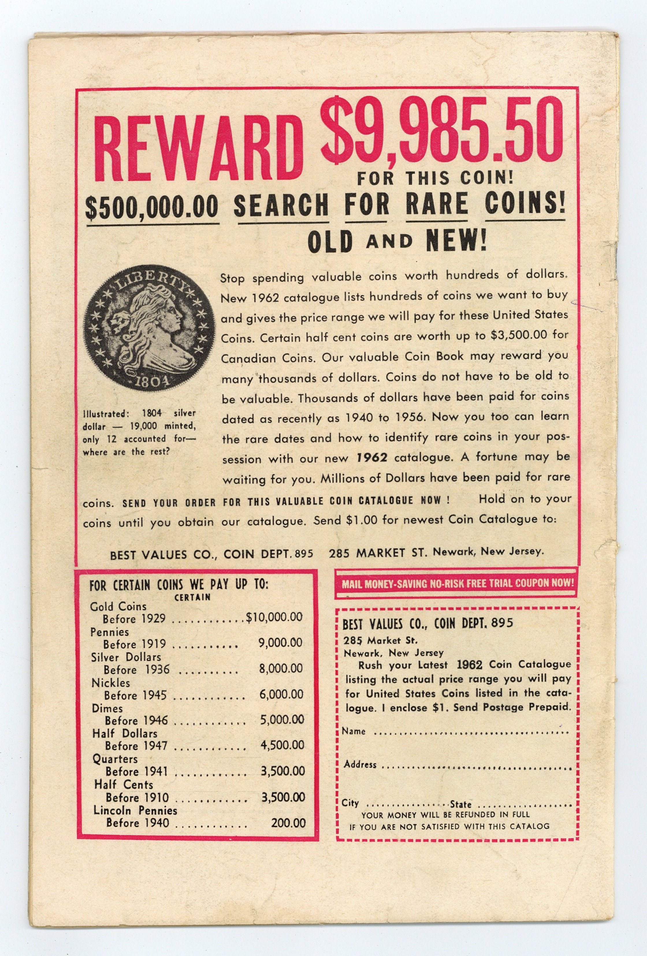 Cover by Jack Kirby. "The Teen-Ager Who Ruled the World!", art by Jack Davis; An arrogant teen-ager finds a genie's lamp and tries to make the world perfect, but finds that all his wishes have unexpected results. "We Can't All Be Human!", script by Stan Lee (plot) and Larry Lieber (script), art by Don Heck; Seemingly friendly aliens arrive on Earth, seeking refuge from pirates, but a philosophy student figures out that the first visitors are the pirates, and disguised themselves to appear pleasant to humans. "Blueprint for Victory" text story. "The Man In The Mirror!", script by Stan Lee, art by Steve Ditko; A millionaire buys an enchanted mirror that allows him to wish any person he dislikes to be trapped inside of it; He wishes dozens of people into the mirror until he is contacted by agents of the IRS who wish to audit his books. 36 pgs., full color. $0.12. Cover price $0.12.