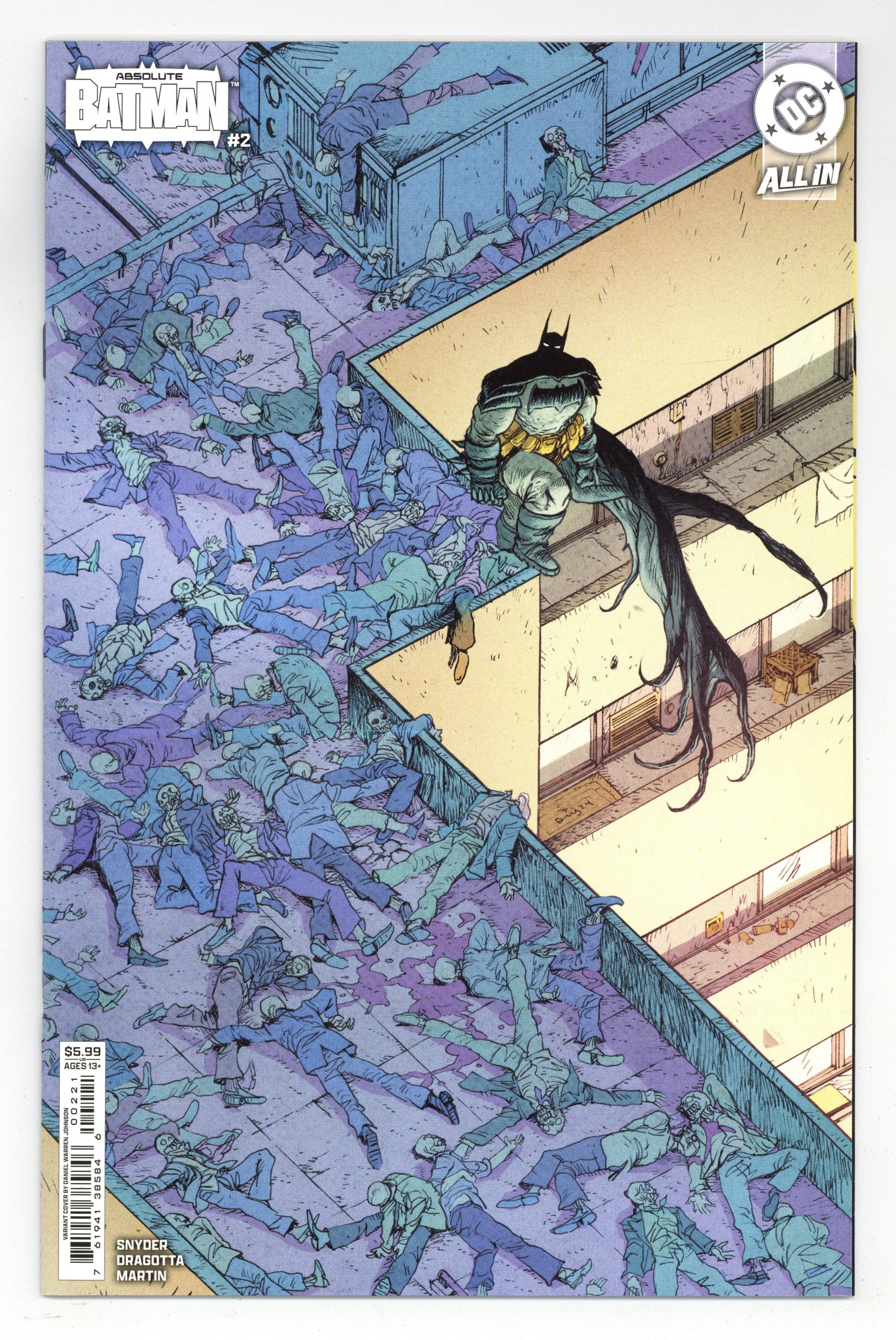 $36.00Written by Scott Snyder. Art by Nick Dragotta. Cover by Daniel Warren Johnson. SNYDER AND DRAGOTTA'S BRAND-NEW TAKE ON THE DARK KNIGHT RAMPAGES ON! Batman was born out of violence - a horrible tragedy that shaped the trajectory of his future. But when a vigilant MI6 agent starts tracking the lonely life of Bruce Wayne, he discovers the interconnectivity between a hero's shell life and the many layers of the Black Mask Gang. It's Batman versus Alfred Pennyworth! 32 pages, full color. Rated T+ Cover price $5.99.