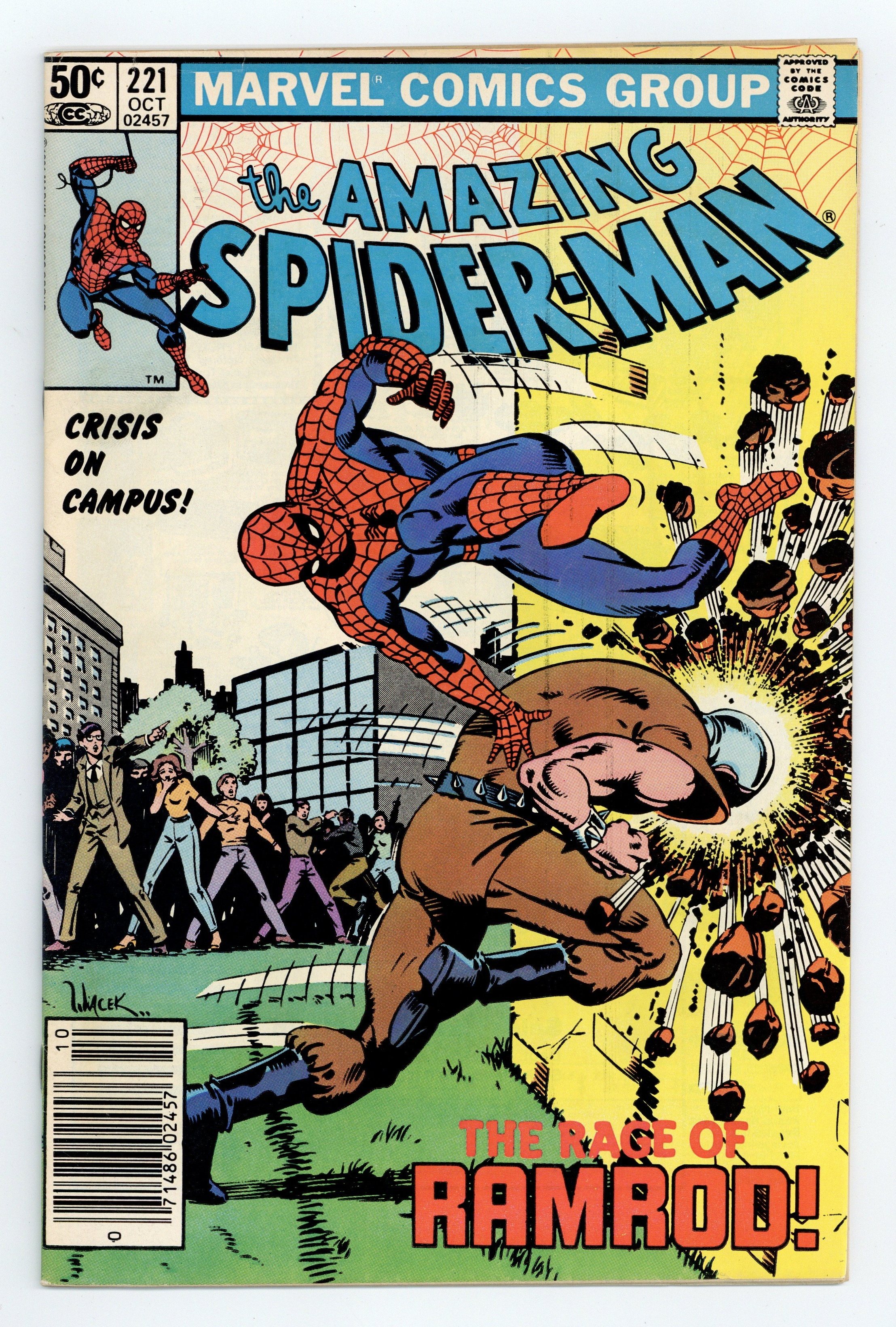 Tags: Spider-Man$19.50Newsstand Edition. "Blues for Lonesome Pinky!" Script by Denny O'Neil. Pencils by Alan Kupperberg. Inks by Jim Mooney. Cover by Bob Wiacek. At a shady dive in Brooklyn, one of Peter Parker's friends and one of Spider-Man's enemies cross paths under surprising circumstances! Tonight Lonesome Pinky makes his singing debut at the rundown nightclub! And like a good neighbor, Peter attends to support his friend! But Ramrod plans to use this evening to take revenge on the bar owner... by poisoning all of the patrons! When the wall-crawler realizes what's going on, he enlists Pinky's aid to calm the crowd! And that leaves the menacing cyborg to the Amazing Spider-Man! Can the web-slinger throttle down Ramrod? Cameo appearance by Debra Whitman. (Note: Spider-Man previously battled Ramrod in Daredevil 103.) 36 pages. 50 cent cover price. Cover price $0.50.