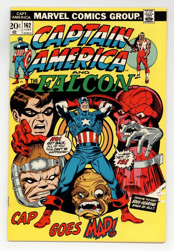 "This Way Lies Madness!" Part 2 of 2. Script by Steve Englehart. Pencils by Sal Buscema. Inks by John Verpoorten. Cover by Jim Starlin and Joe Sinnott. The Falcon, Sharon Carter, and the star-spangled avenger are prisoners of Doctor Faustus in his private sanitarium! And as expected the good doctor subjects the heroic trio to mind-altering experiments. Why is Dr. Faustus so interested in Agent 13 and Captain America? It's because he has a special patient that no one knows about: Peggy Carter! Wow, Peggy was Cap's sweetheart in Paris during WWII (see Tales of Suspense #77). When Cap learns that Peggy is alive somewhere in Faustus' facility, the Living Legend goes for broke to find her! Can the Sentinel of Liberty reclaim a part of his past while fighting in the present? An uplifting story! Cameo appearances by Harrison Carter and Amanda Carter. (Notes: Doctor Faustus returns in Captain America 192. The letters page includes a letter from comics artist Duffy Vohland.) 36 pages. Cover price $0.20.