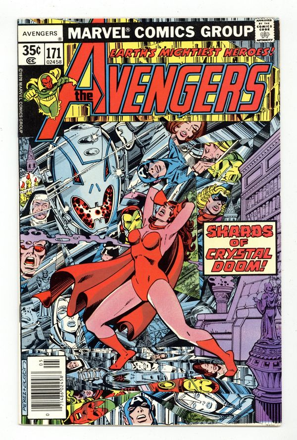 The Korvac Saga: Part 4 of 10 - "Where Angels Fear to Tread" Guest-starring Ms. Marvel. Script by Jim Shooter. Pencils by George Perez. Inks by Pablo Marcos. Cover by George Perez and Terry Austin. Earth's Mightiest Heroes are in hot pursuit of Jocasta through the streets of Manhattan! During the chase the Avengers pick up an ally, Ms. Marvel, and locate the female robot's final destination...a convent! Is Ultron hiding out among the nuns? The evil one is full of surprises! And the next one is for the Scarlet Witch, the most dangerous avenger to the adamantium monster! It's another classic battle between the Avengers and Ultron! An excellent issue! (Notes: Ultron returns in Avengers 202. This issue was reprinted in 1999 in Ultron Unleashed 1. The letters page includes a letter from comics editor Kevin Dooley.) 36 pgs. Cover price $0.35.
