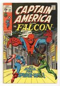 Cover art by Sal Buscema. "To Stalk the Spider-Man," script by Stan Lee, pencils by Gene Colan, inks by Bill Everett; Mole Man raises Captain America and the Falcon to the surface with his levitation beam; The Falcon sees Spider-Man, who is currently wanted by the police, swinging through the city; He decides to capture the Web-Slinger; Falcon stops a mugging, but continues his pursuit of Spidey; Falcon thinks Harry Osborne is Spider-Man and captures him; Peter Parker changes into his Spidey suit goes to rescue Harry; Spidey defeats the Falcon and plants a Spider-Tracer on him; The gangster Stone Face is out on bail and seeking revenge. Brief appearances by Nick Fury and Sharon Carter. 36 pgs., full color. $0.15. Cover price $0.15.