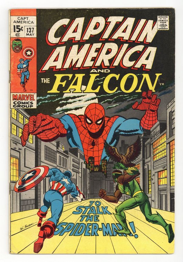 Ends Dec 8 7:47 PM CST Bid History 5 bids Current Bid $16 Your Secret Max Bid If you'd like to bid, please log in or register. Cover art by Sal Buscema. "To Stalk the Spider-Man," script by Stan Lee, pencils by Gene Colan, inks by Bill Everett; Mole Man raises Captain America and the Falcon to the surface with his levitation beam; The Falcon sees Spider-Man, who is currently wanted by the police, swinging through the city; He decides to capture the Web-Slinger; Falcon stops a mugging, but continues his pursuit of Spidey; Falcon thinks Harry Osborne is Spider-Man and captures him; Peter Parker changes into his Spidey suit goes to rescue Harry; Spidey defeats the Falcon and plants a Spider-Tracer on him; The gangster Stone Face is out on bail and seeking revenge. Brief appearances by Nick Fury and Sharon Carter. 36 pgs., full color. $0.15. Cover price $0.15.
