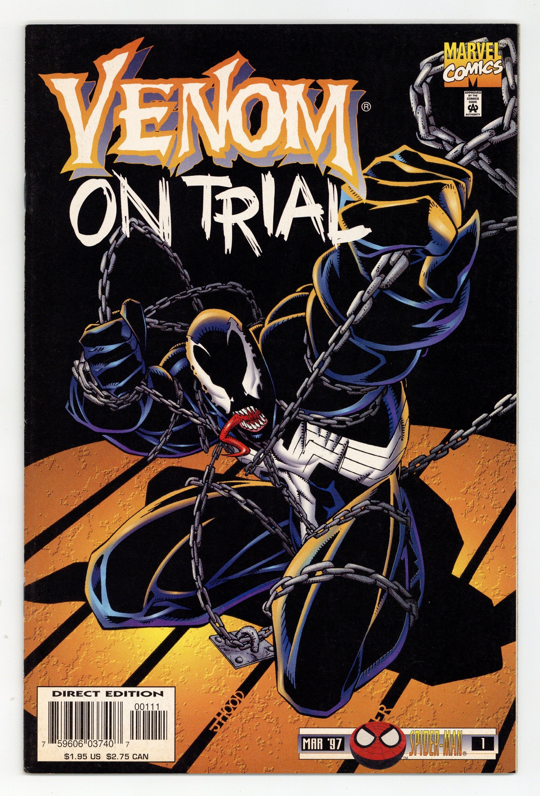 Daredevil appearance. It's the Marvel media circus of the decade as Venom is finally put on trial for his crimes! Eddie has two options to win his freedom: he can submit to judgment by a jury of his peers, or he can try to break out of the most misbegotten prison this side of the Rock--guess which choice he makes! Written by Larry Hama. Art by Josh Hood and Derek Fisher. Cover by Josh Hood. (Venom also appears in this month's Uncanny Origins (1996) #7.) Cover price $1.95.
