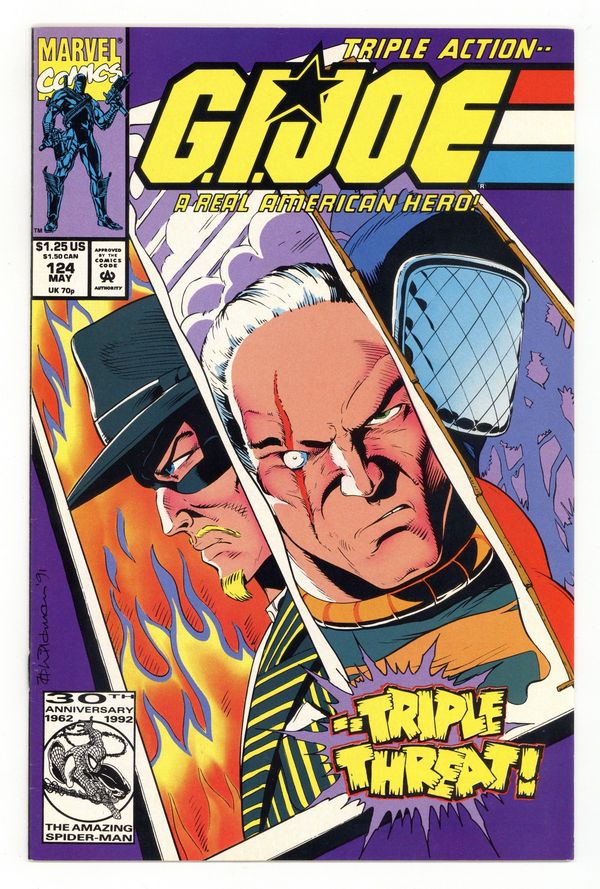 This "Triptych" issue has three separate storylines. First the G.I. Joe drug elimination force battles Headman and his Headhunters. Second, Flint and his Eco-Warriors battle Cesspool and the Cobra Sludge-Vipers and Toxo-Vipers. Third, the G.I. Joe Ninja Force is drawn into international intrigue by Slice & Dice and the Red Ninja pawns. Written by Larry Hama, with art by Andrew Wildman and Randy Emberlin. Plus: a schematic of the Brawler missile launcher by Eliot Brown. Cover by Andrew Wildman. Cover price $1.25.