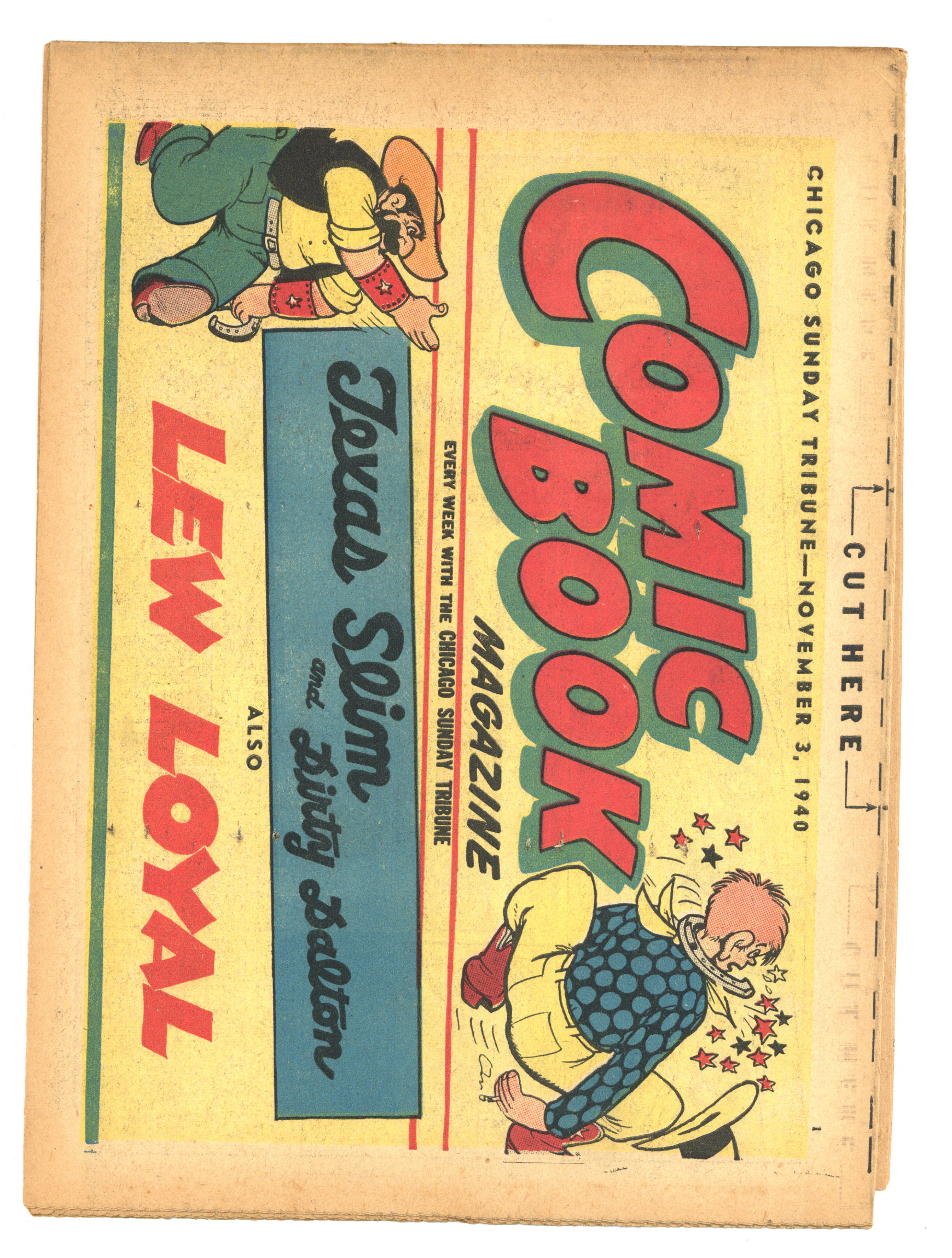 Published Nov 1940 by Chicago Tribune.$40.00November 3, 1940. Comic Book Magazine is published by the Chicago Tribune. Enjoy such comic strips as Texas Slim and Dirty Dalton, Lew Loyal, Kit Cabot, Spooky, Fighting with Daniel Boone, and many more. Originally came each Sunday with the Chicago Sunday Tribune. 16 pages, full color, 18.50-in X 13.25-in.