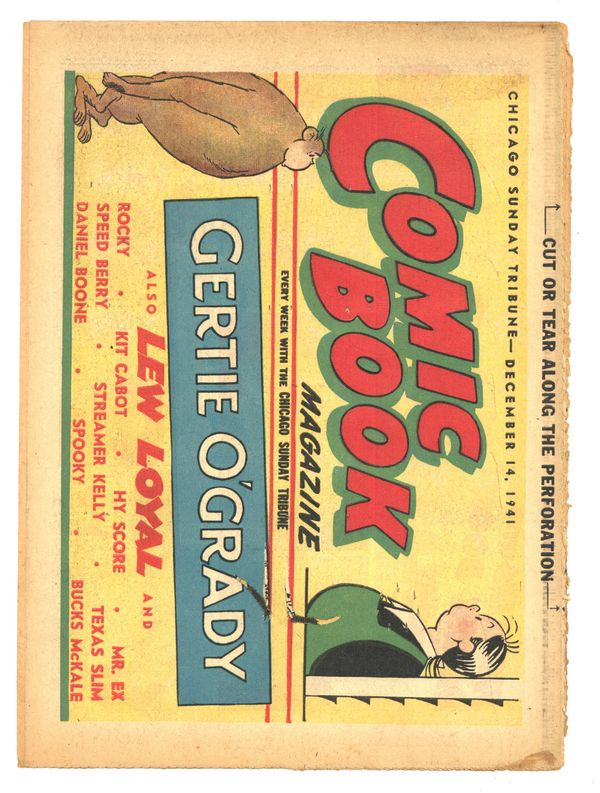 Published Dec 1941 by Chicago Tribune.$40.00December 14, 1941. Comic Book Magazine is published by the Chicago Tribune. Enjoy such comic strips as Texas Slim and Dirty Dalton, Lew Loyal, Kit Cabot, Spooky, Fighting with Daniel Boone, and many more. Originally came each Sunday with the Chicago Sunday Tribune. 16 pages, full color, 18.50-in X 13.25-in.