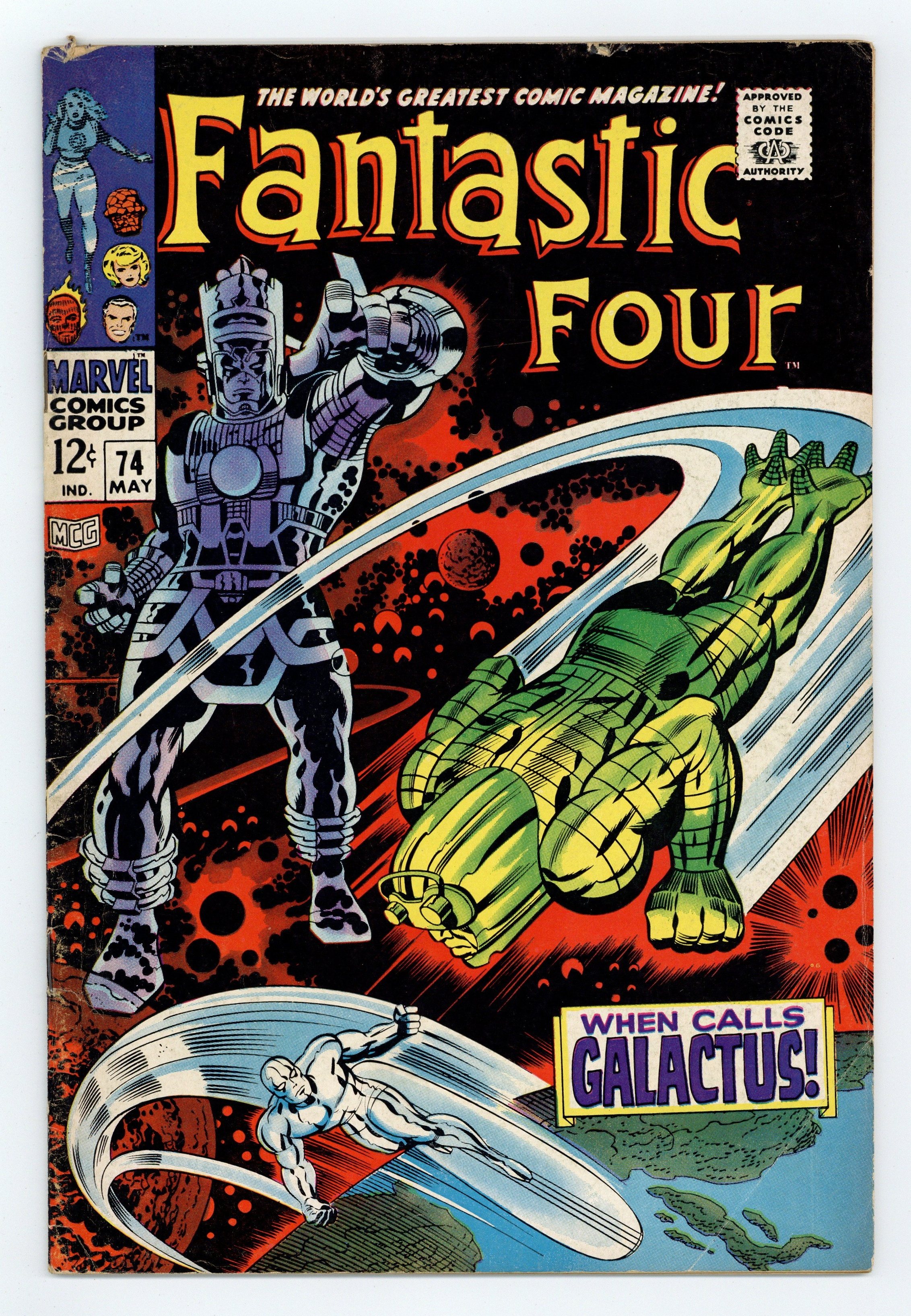 Starts Apr 27 Cover pencils by Jack Kirby, inks by Joe Sinnott. The Silver Surfer, Galactus, and Crystal (of the Inhumans) guest star in When Calls Galactus, script by Stan Lee and Jack Kirby (co-plot), pencils by Jack Kirby, inks by Joe Sinnott; Galactus dispatches his Punisher to retrieve the Surfer who is protected by the FF. Letters to the editor from comics writers Don McGregor and Tony Isabella. Kirby/Sinnott cover. Reprinted in Marvel's Greatest Comics # 56. 36 pgs. Cover price $0.12.