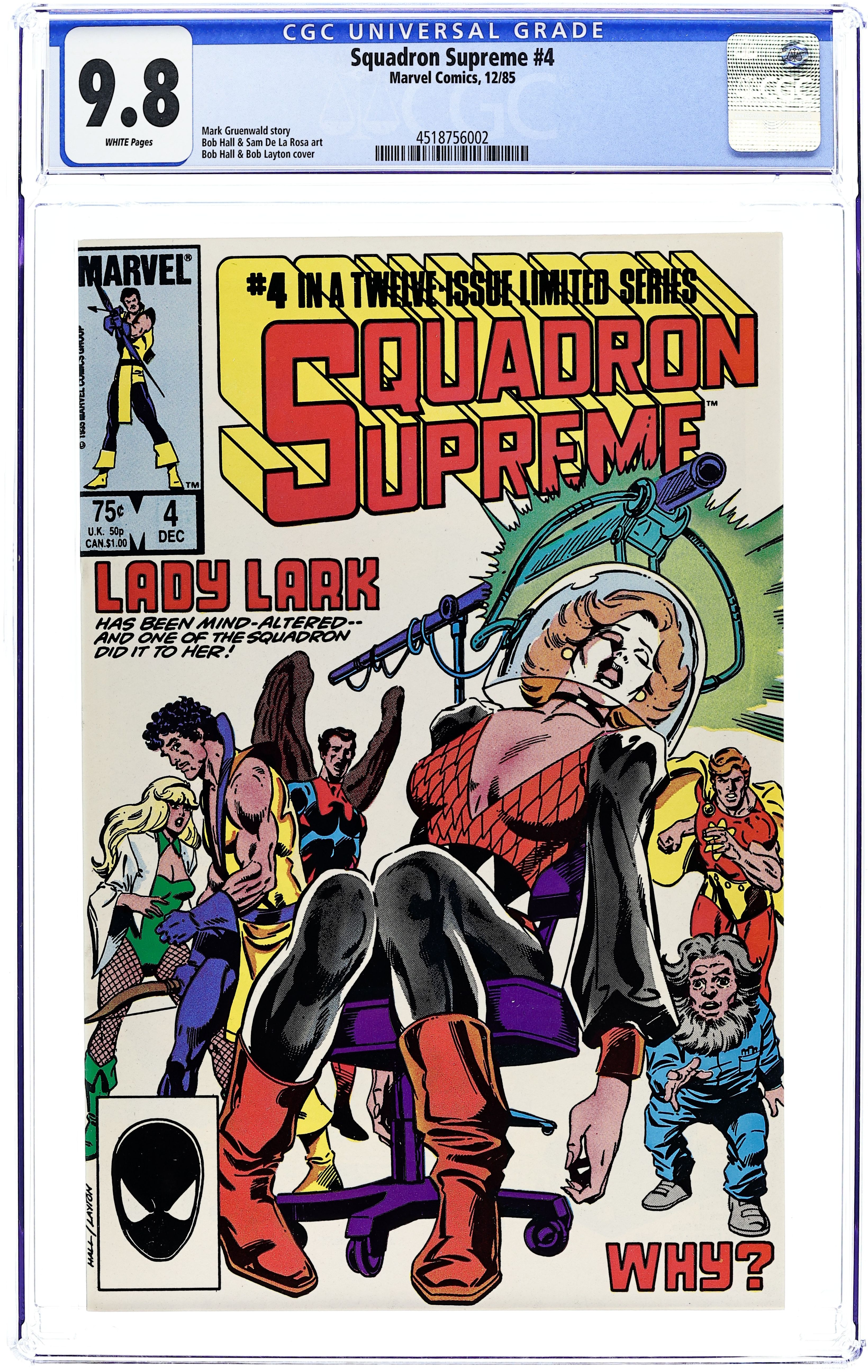 "Change of Heart!" Story by Mark Gruenwald. Art by Bob Hall and Sam De La Rosa. Cover by Hall & Bob Layton. One member of the team commits the ultimate crime against a fellow Supremer. Anytime someone usurps control over another's free will, it's never a good thing. Plus, learn the secret origin of Doctor Spectrum. 32 pages, FC. Cover price $0.75.