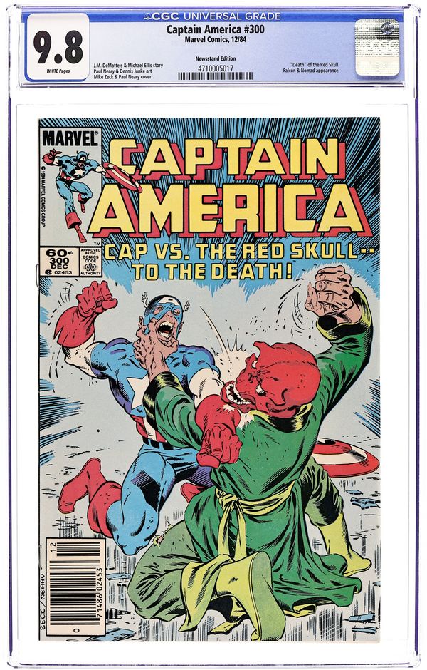 Newsstand Edition. In a bunker beneath Skullhouse, the final battle in a war begun 40 years before reaches its climax! It's a battle between madness and sanity, between debauchery and decency, between the maniacal Red Skull and America's greatest hero...Captain America...in "Das Ende!" Black Crow, Nomad, Falcon, Bernie appearances. Plot by J.M. DeMatteis, script by Michael Ellis, pencils by Paul Neary, inks by Dennis Janke. Pin-up by Neary. Cover by Mike Zeck & Neary. 36 pgs. Cover price $0.60.
