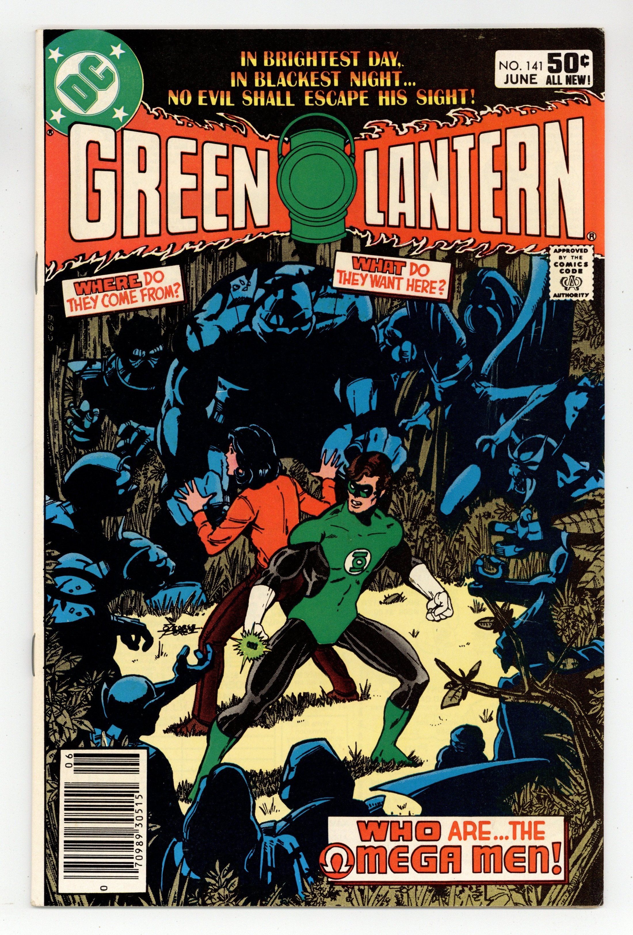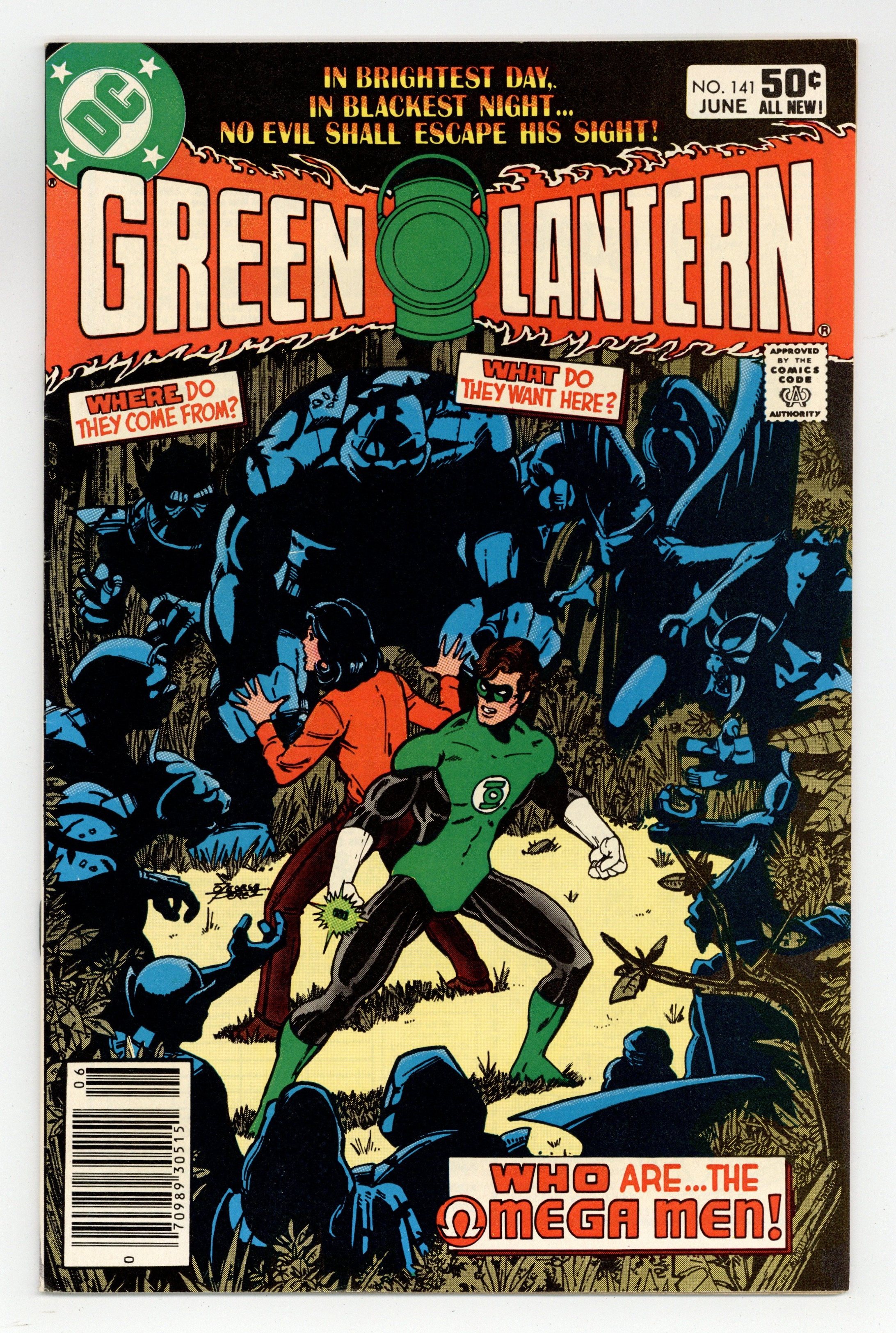 Newsstand Edition. 1st appearance of Omega Men. "The Lurkers in the Shadow." While vacationing in Canada, Green Lantern and Carol Ferris are captured by the Omega Men, who make their first appearance. Script by Marv Wolfman, art by Joe Staton. Cover by George Pérez. Cover price $0.50.