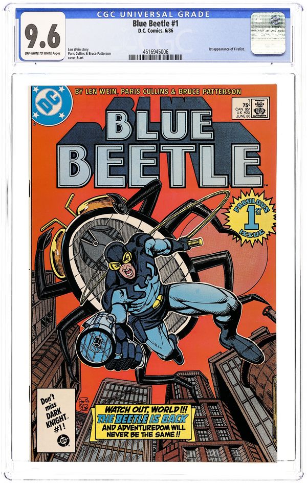 Direct Edition. Scientist and entrepreneur Ted Kord, a.k.a. the Blue Beetle, has a rematch with Firefist, the Incendiary Man, in "Out From The Ashes!" Part 1 of 2, continued next issue. Script by Len Wein, pencils by Paris Cullins, inks by Bruce Patterson. Cullins/Patterson cover. Cover price $0.75.