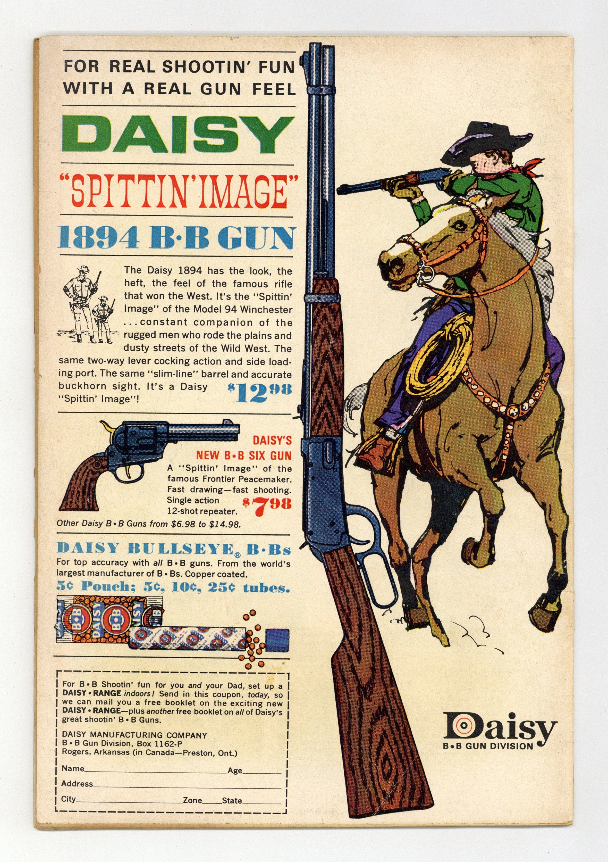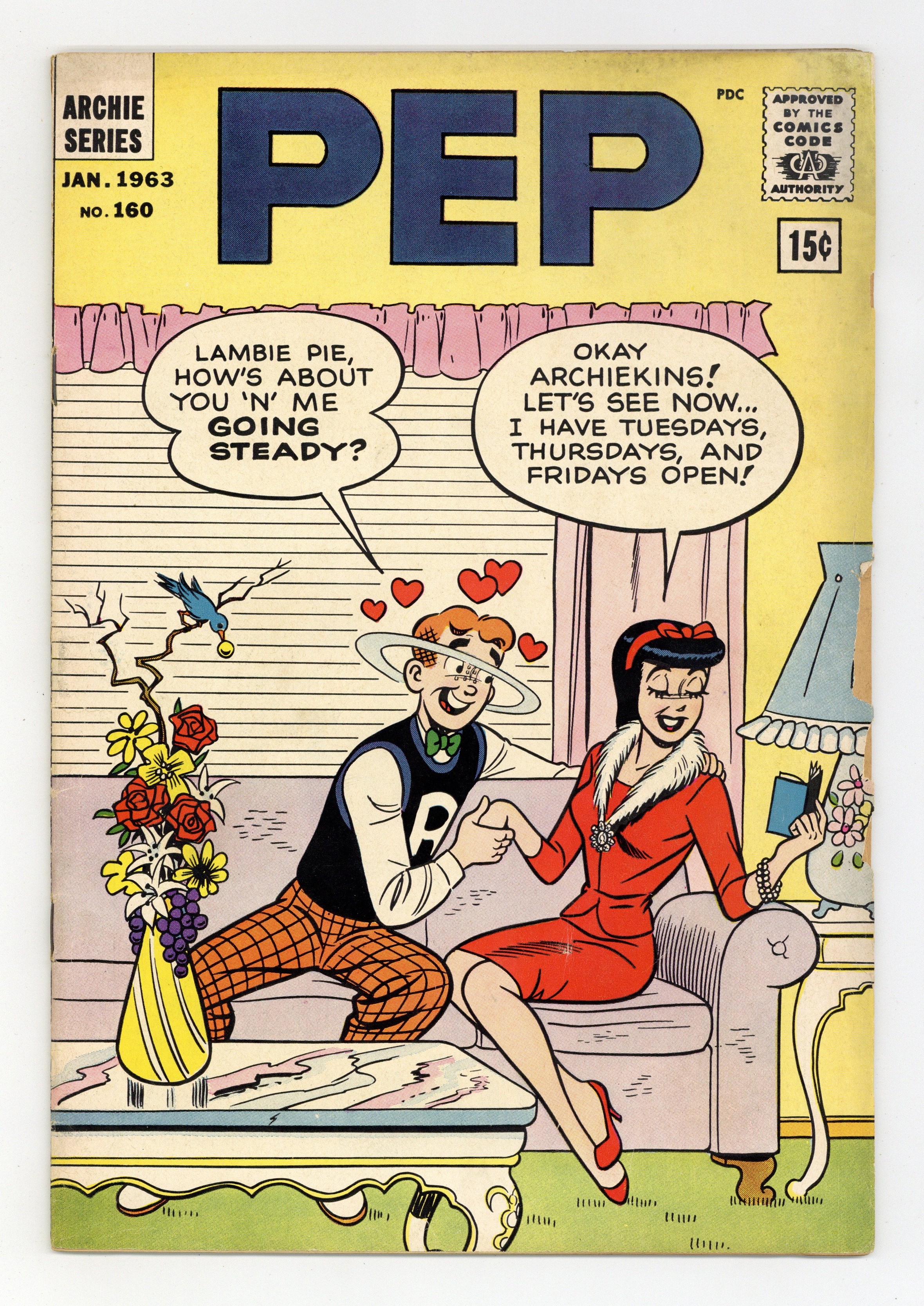 15¢ Test Market Cover Price Edition. "Point of View," art by Harry Lucey; The faculty is so used to the same old grind that they don't notice when a creature from outer space registers as a student. "Having a Ball" one-page story, art by Dan DeCarlo; Betty thinks Veronica has a bowling ball in the bag she brings to the bowling alley, but in reality it is just her makeup bag. "The Beast from Space," script by Robert Bernstein, art by John Rosenberger; A monster creature from outer space, curious about hydrogen bomb testing, comes to Earth; The Fly and Fly Girl are unable to stop it until they lure it to an H-bomb test. Archie's Christmas Stocking ad. "Big Business," script and art by Joe Edwards; Jinx finds no buyers for her old toys until she starts giving trading stamps. Archie Club News. "The Phantom," pencils by Harry Lucey; When Moose threatens to smash him after school, Archie tries to get a detention so he'll be kept after school; Unfortunately Archie's infractions are so blatant that Mr. Weatherbee thinks he's having hallucinations. 36 pgs., full color. Cover price $0.15.