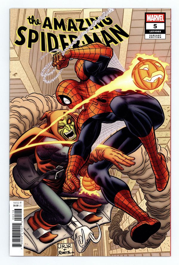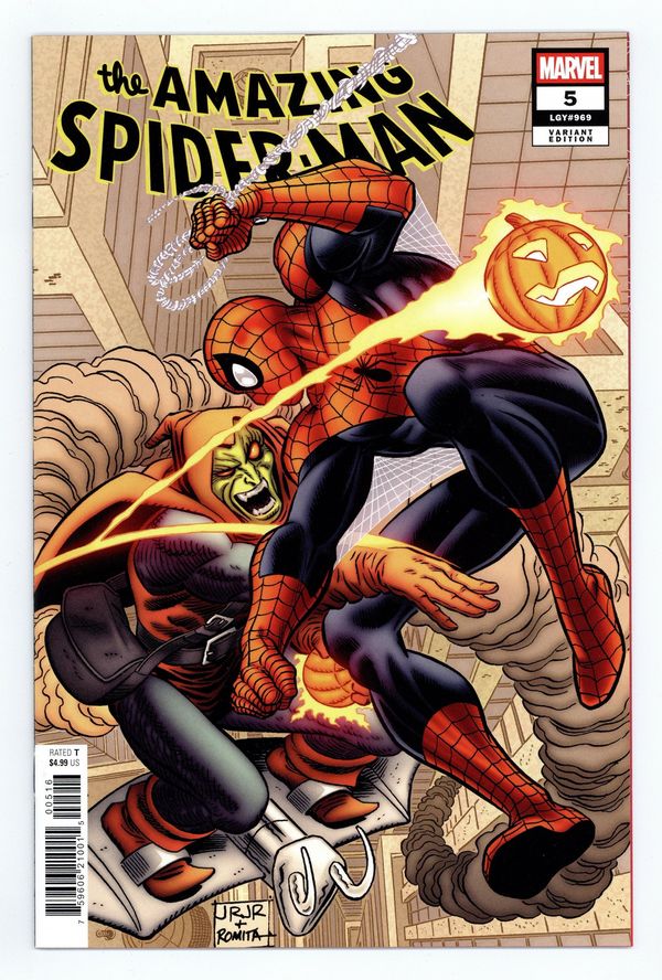 Tags: Spider-Man$20.00Limited 1 for 50 Retailer Incentive Variant Cover. Written by Joe Kelly. Art by Pepe Larraz. Cover by John Romita Jr.; John Romita Sr. NO HOPE AGAINST THE HOBGOBLIN! As HOBGOBLIN's assault tears SPIDER-MAN's mind (and limbs) apart, Kingsley unleashes his wrath on those nearest and dearest to Peter Parker. And this is a deadly race against time Spider-Man can't afford to lose - even as he risks losing his sanity to win! 32 pages, full color. Rated T Cover price $4.99.